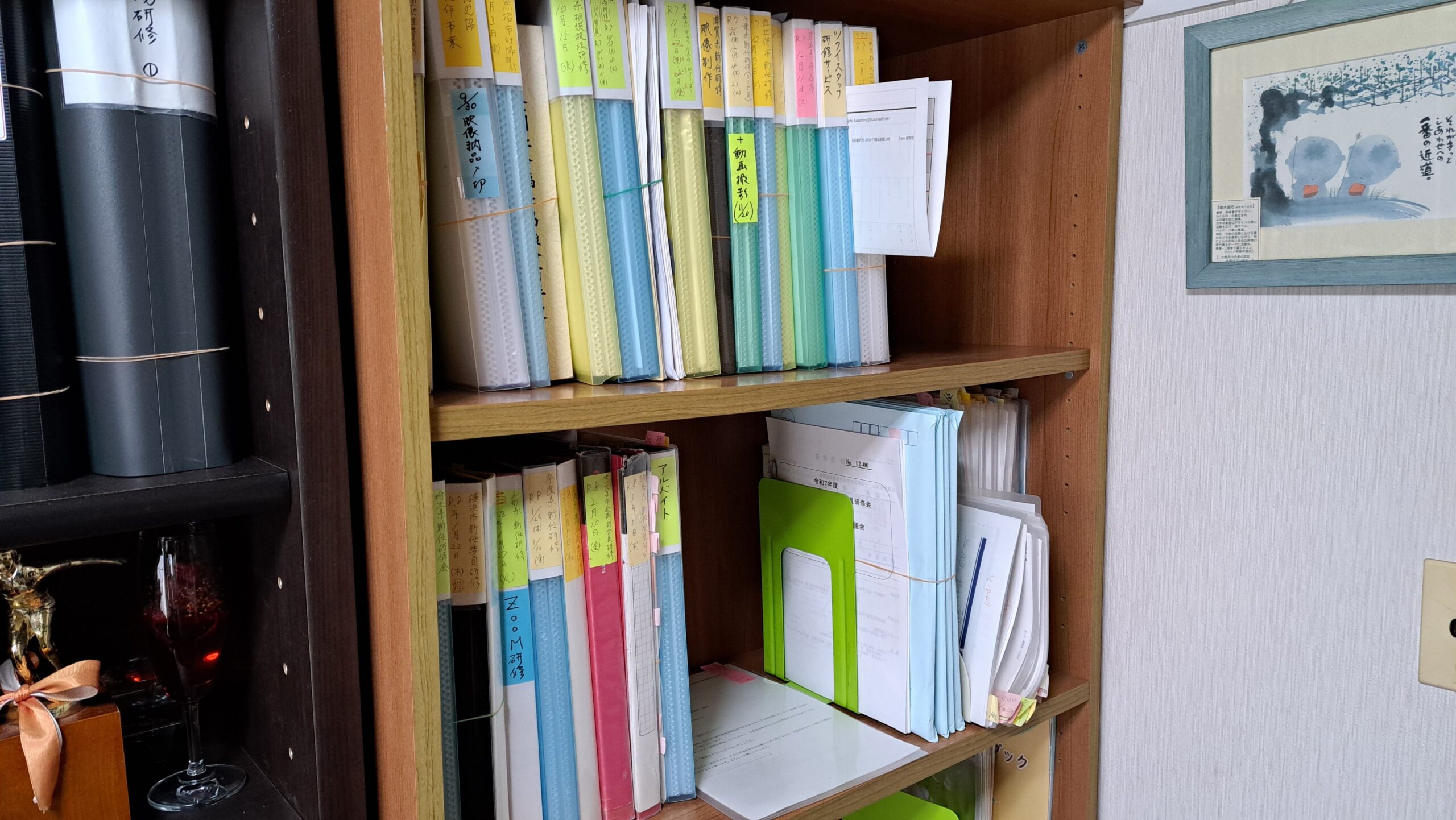 事務所内で、研修の講義映像の収録・編集作業などが埋まっています。