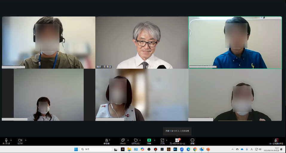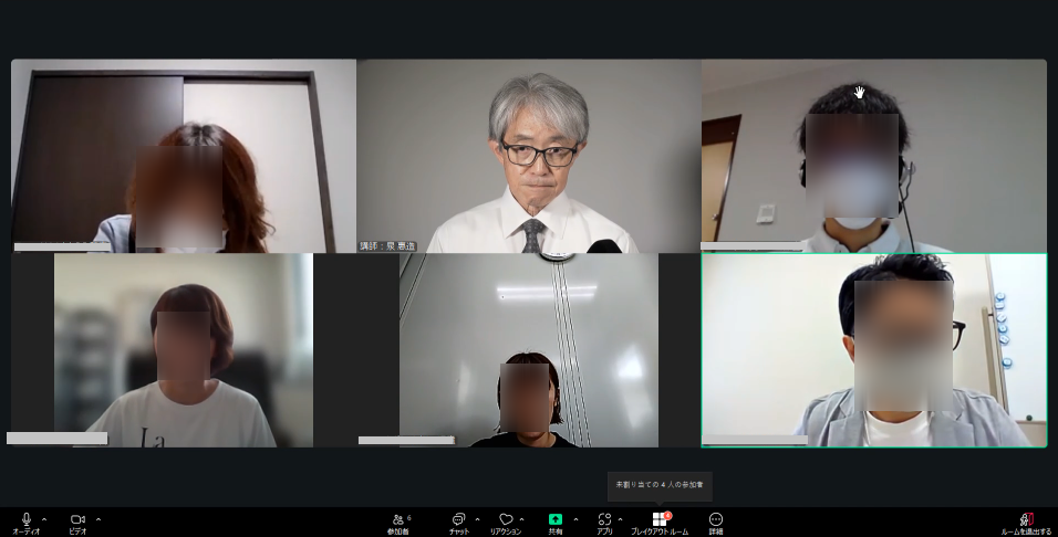 中央のモニターには、受講者の皆様のお顔が並びます。