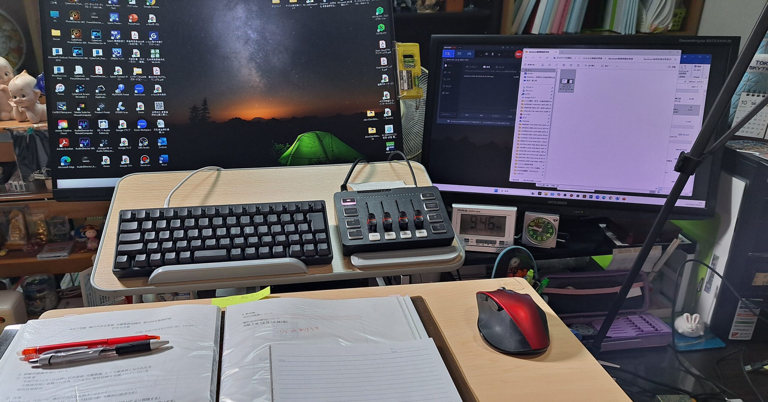 モニター前には資料台を準備し、