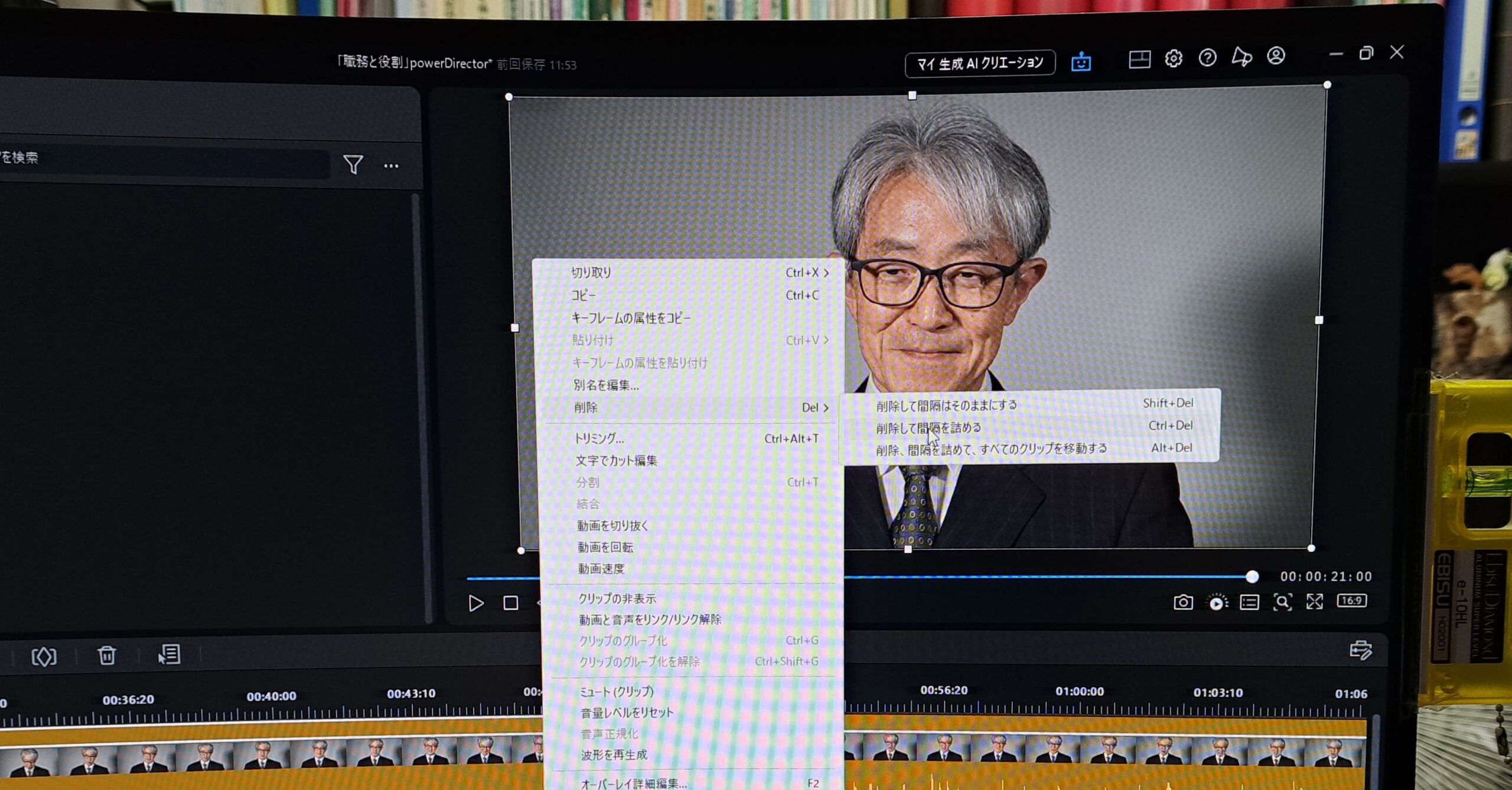 収録映像を、powerDirectorに取り込み、