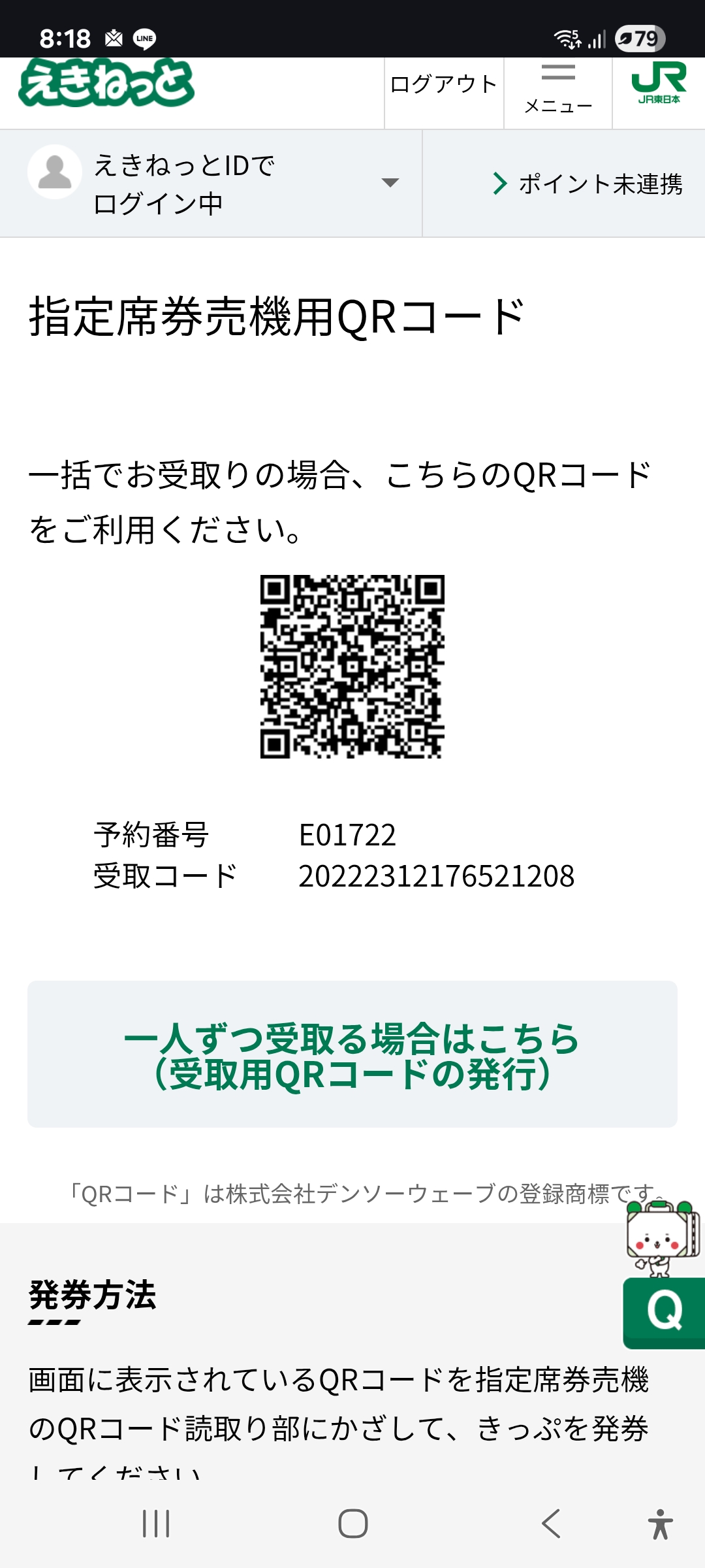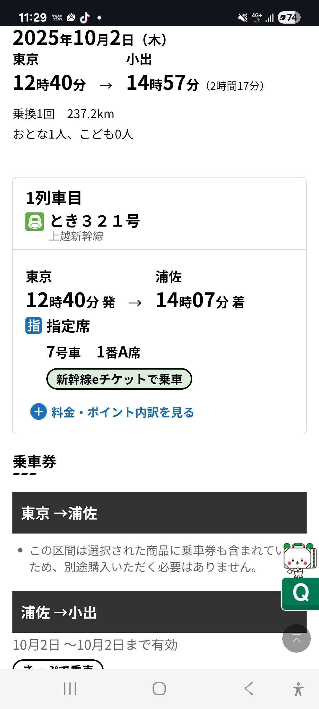 すでに新幹線は「eチケット」でネット予約・購入済。