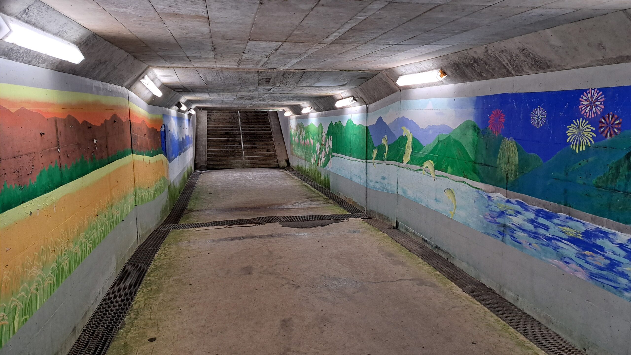 地下通路内には、地元の小中学校の生徒さんたちが、