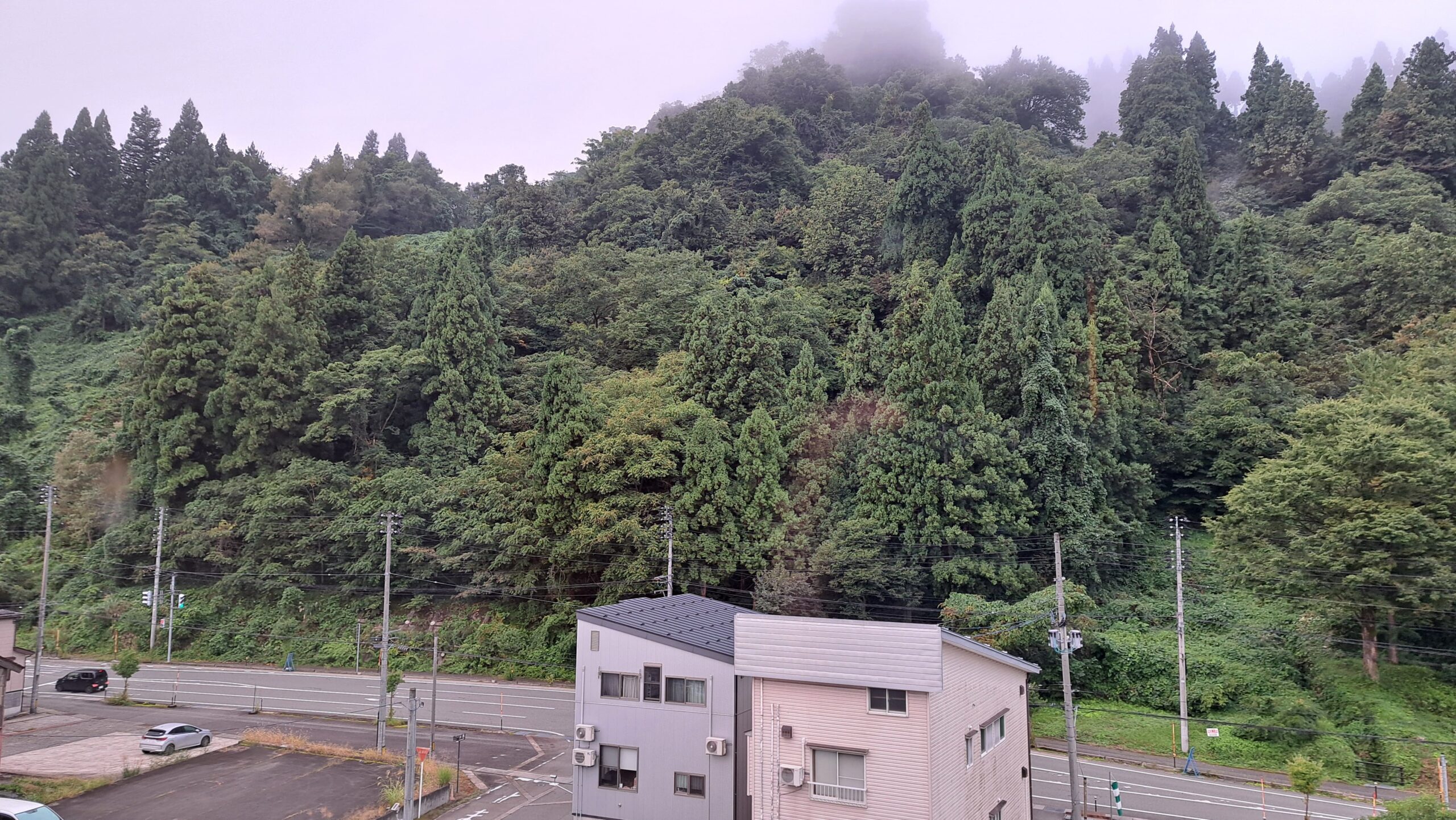 明るくなってきた山あいに、