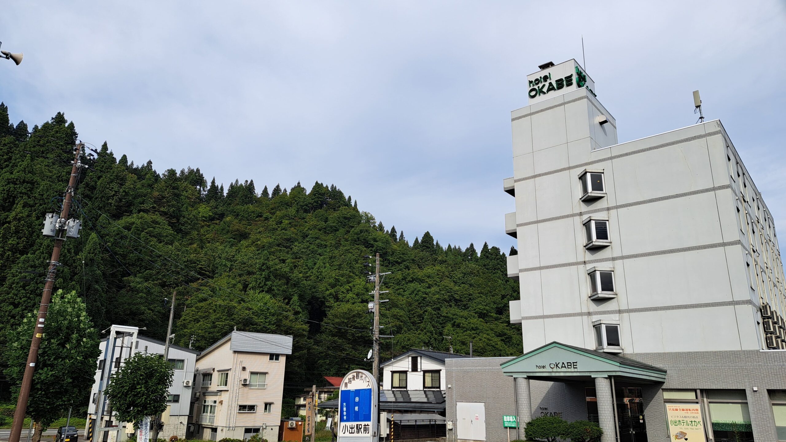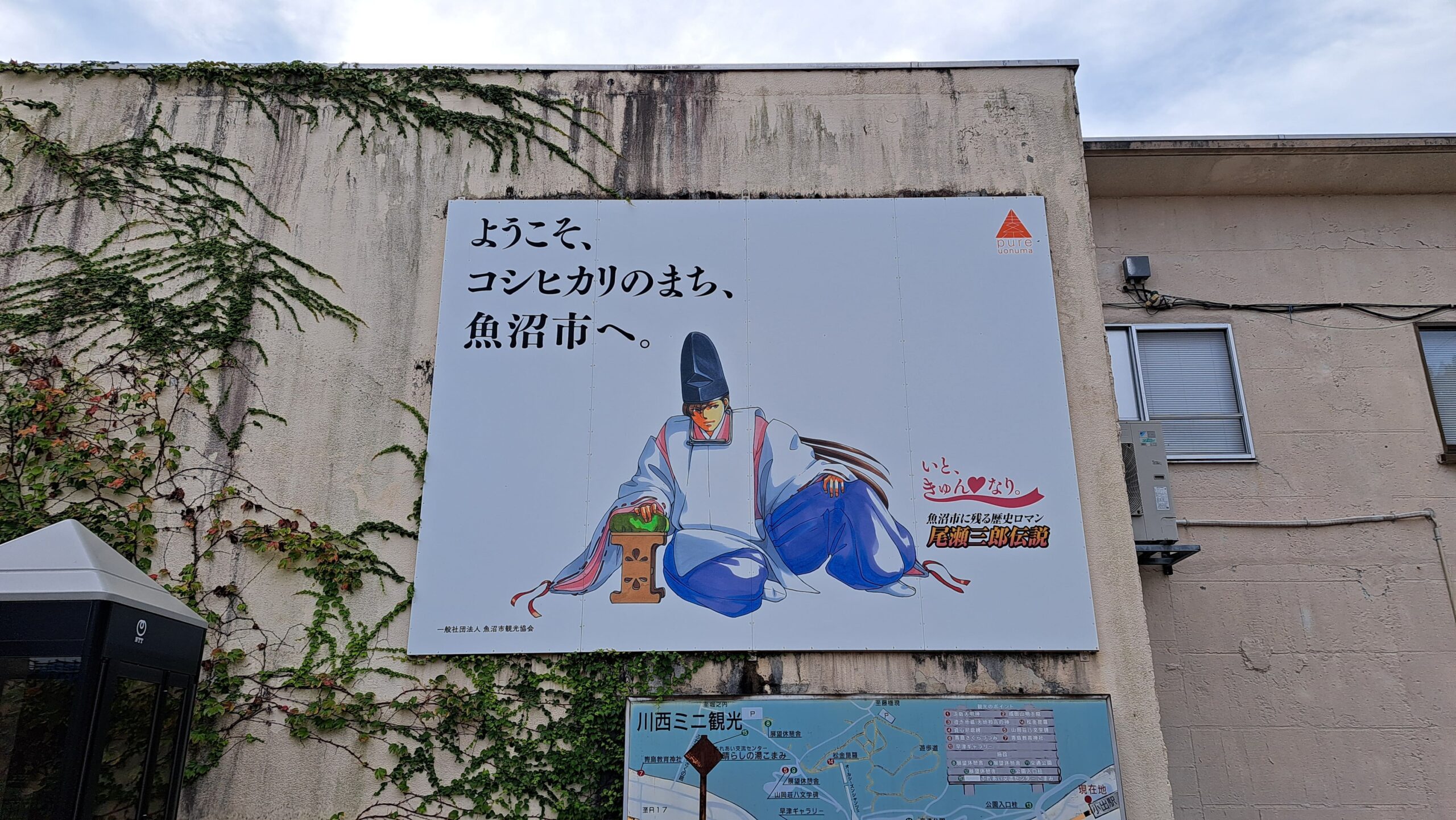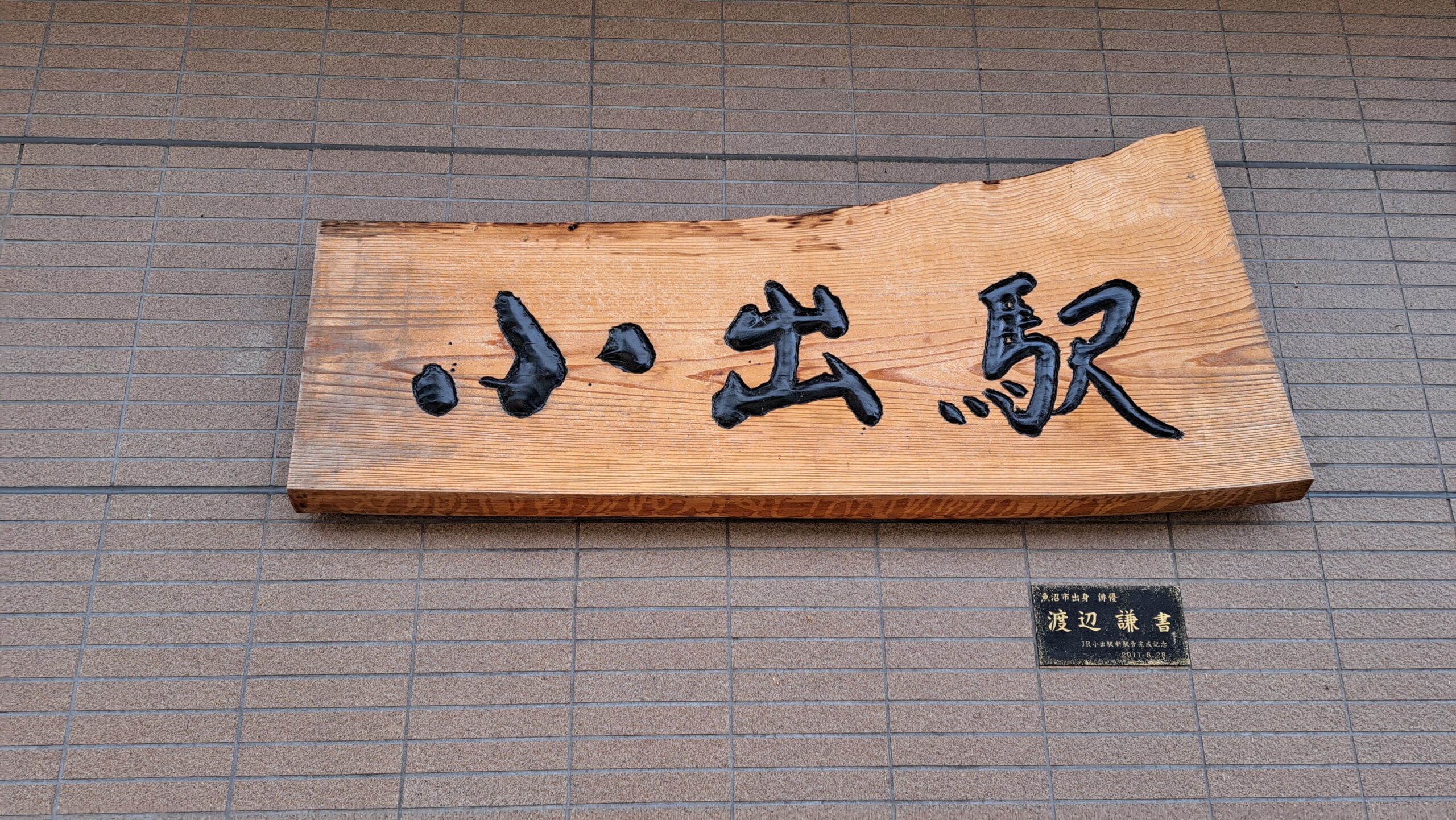 小出駅横の建物の壁には、