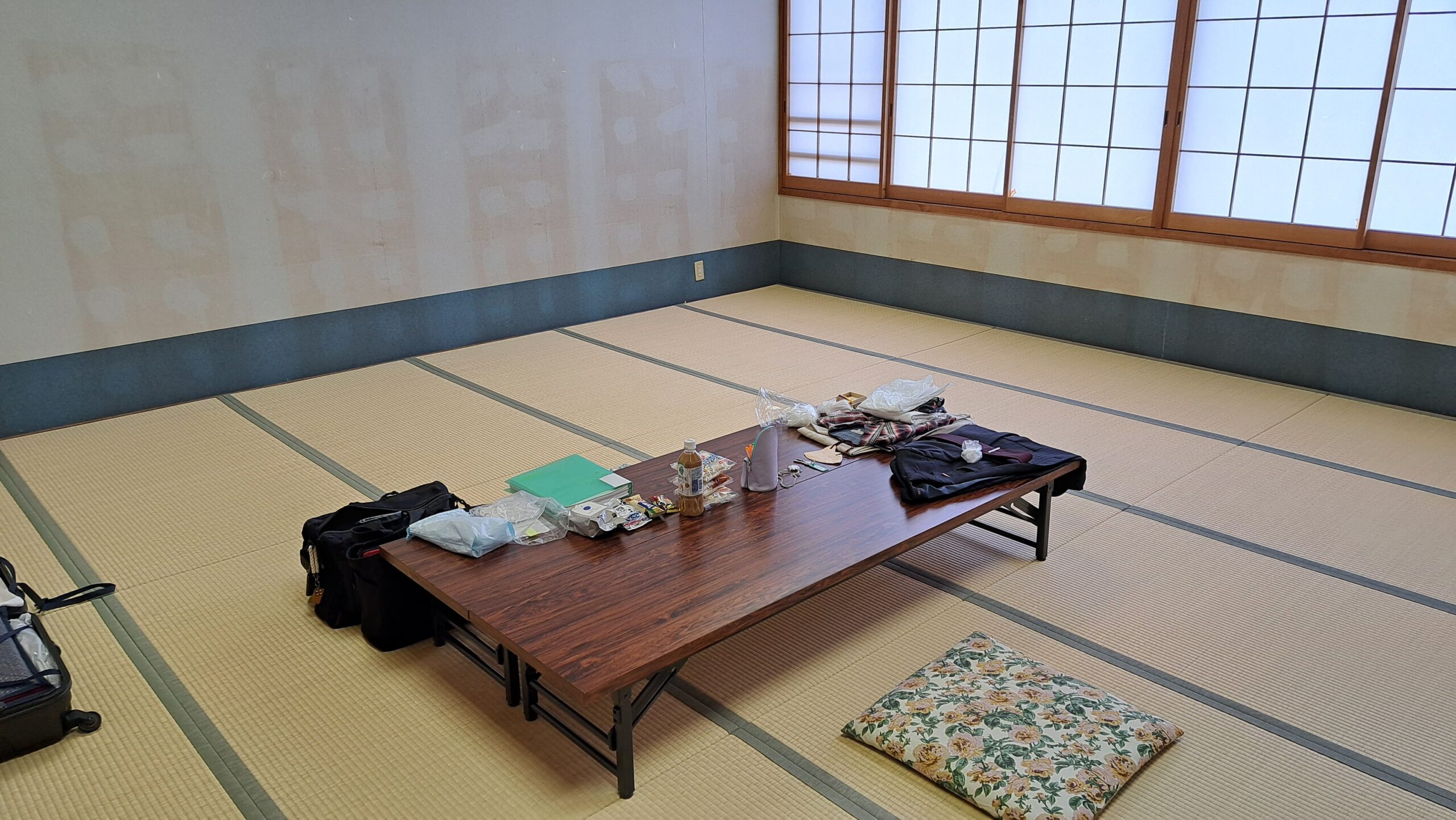 部屋で荷ほどきをし、
