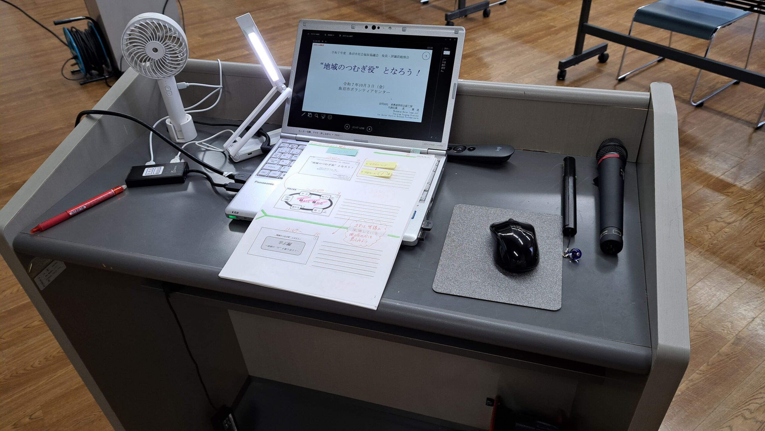 演台周りを準備し、