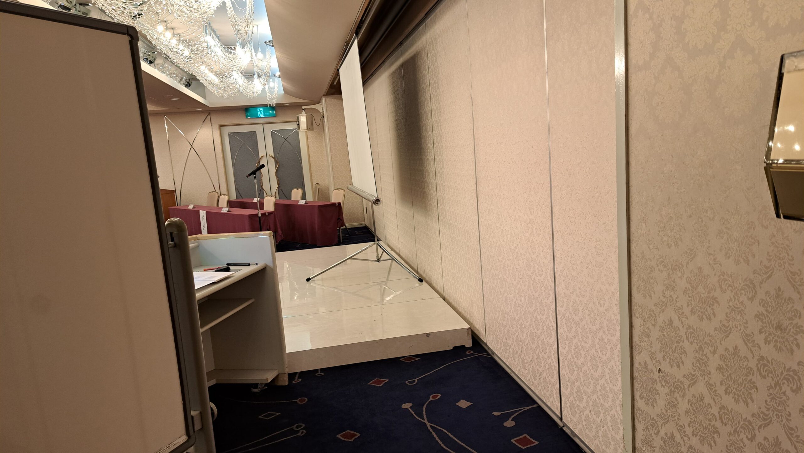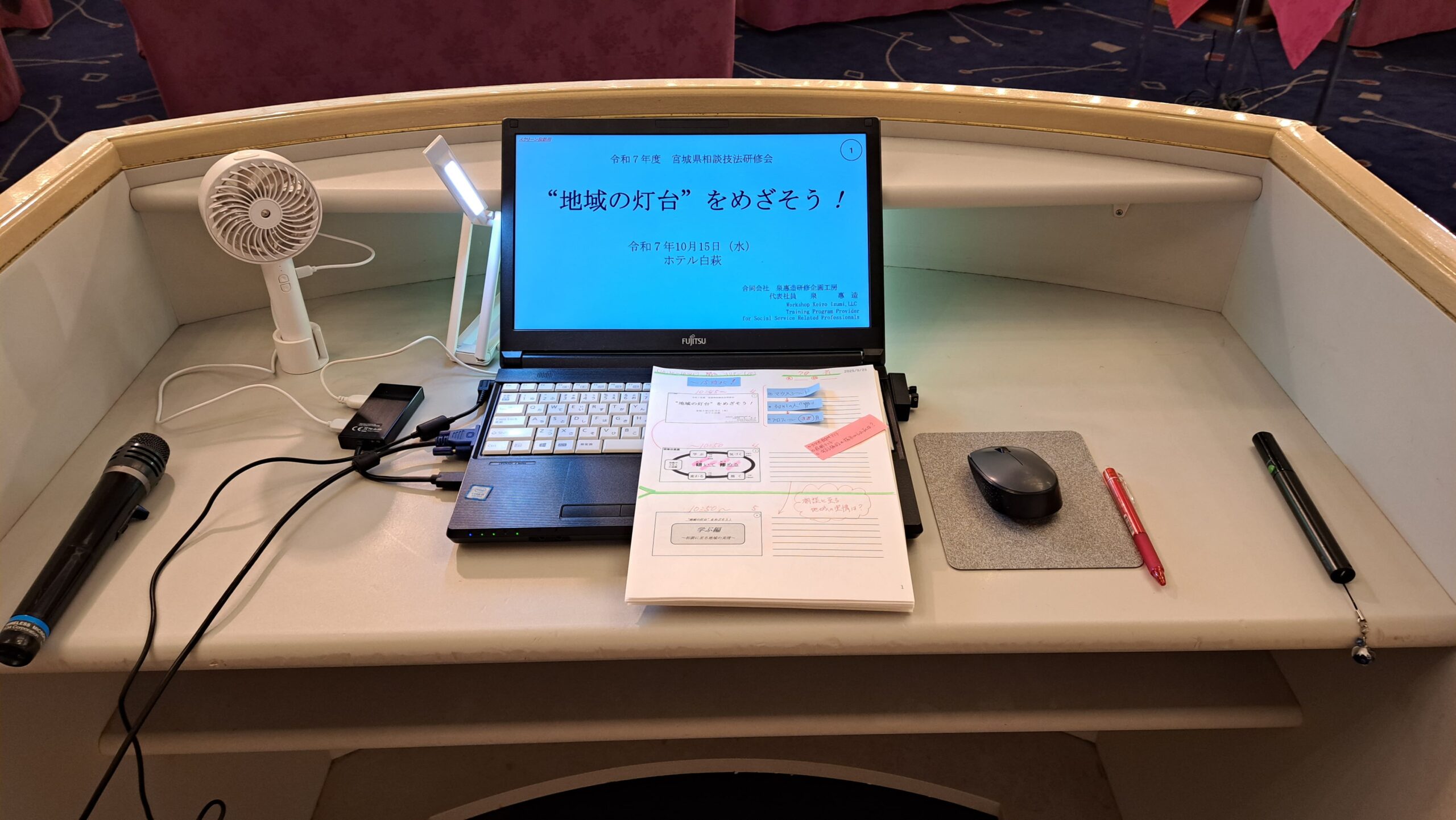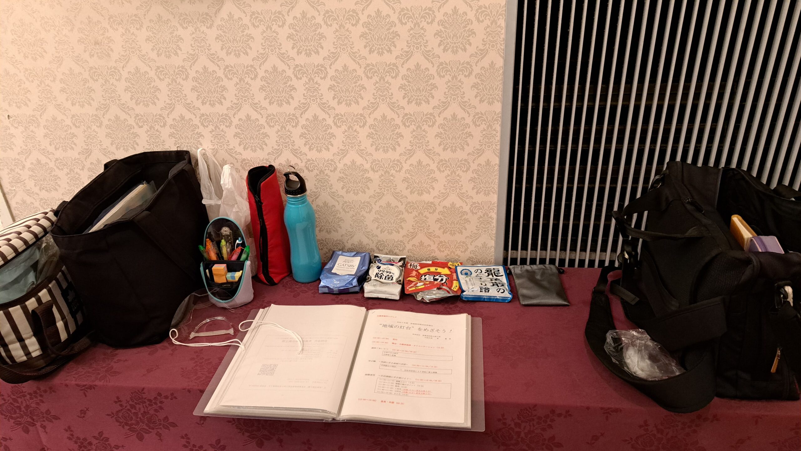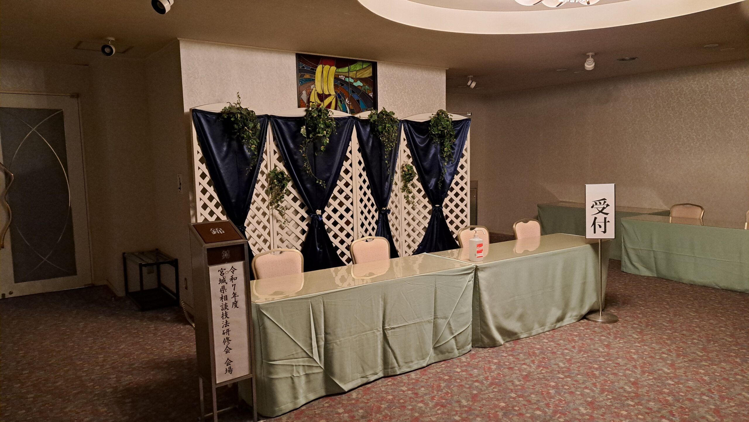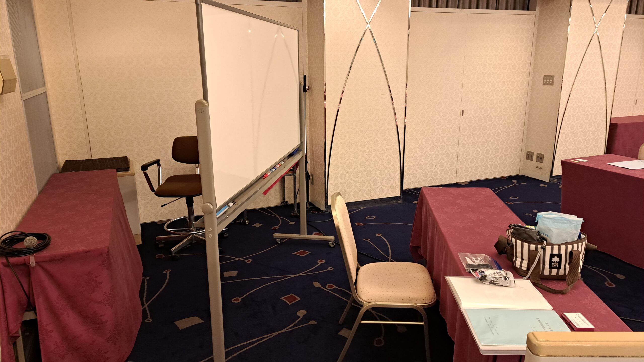 演台の横に設けていただいたバックヤードの方も準備をしました。