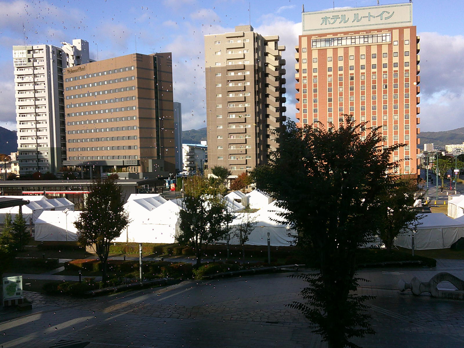 駅の反対側の広場には、すでに多くのテントが張られています。