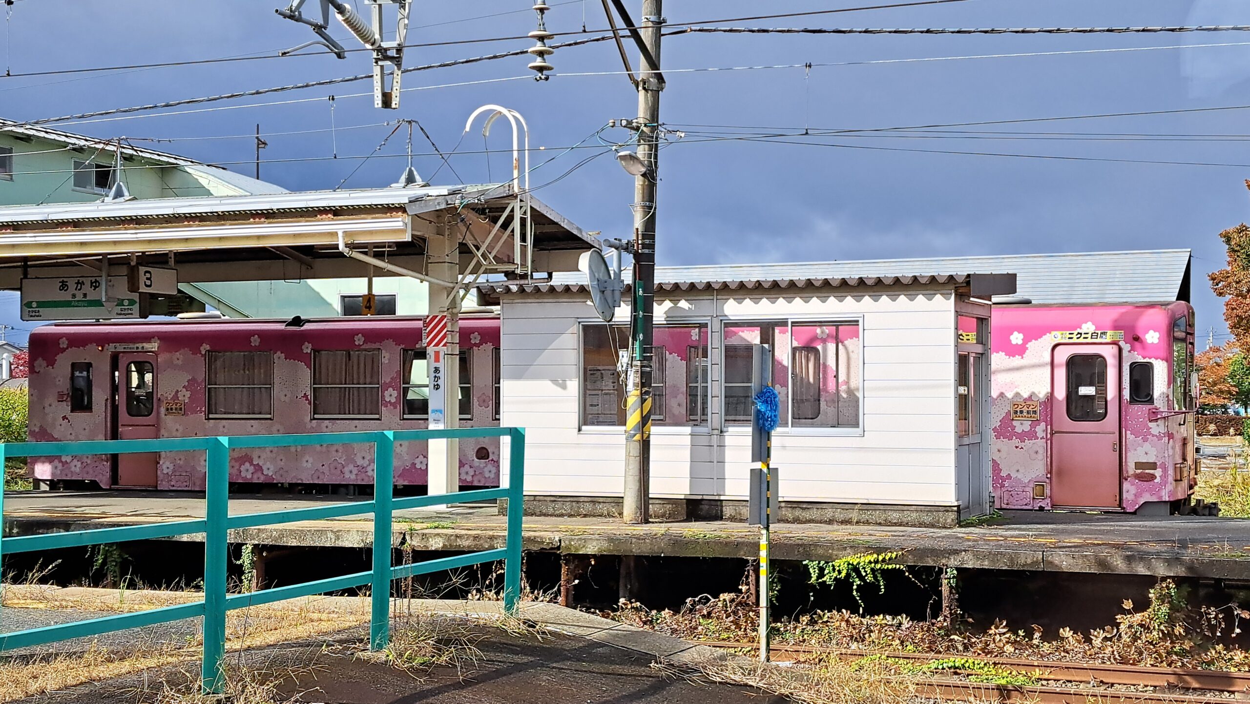 その赤湯駅では、一両編成のかわいい列車も発見!