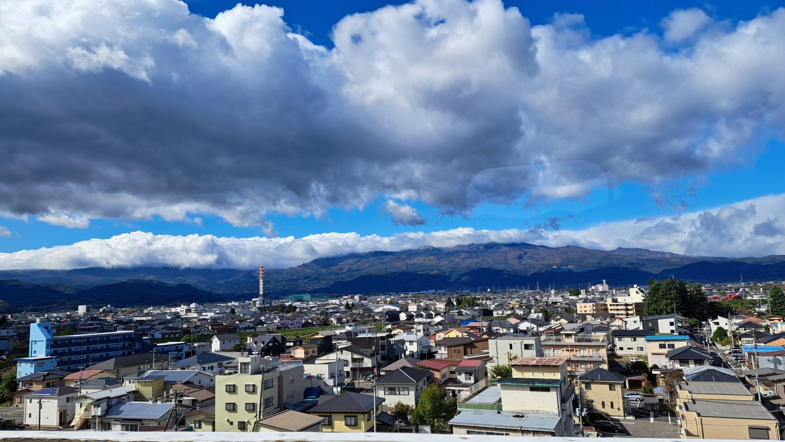 福島駅では、山の稜線を這うように広がる雲を見つけました。