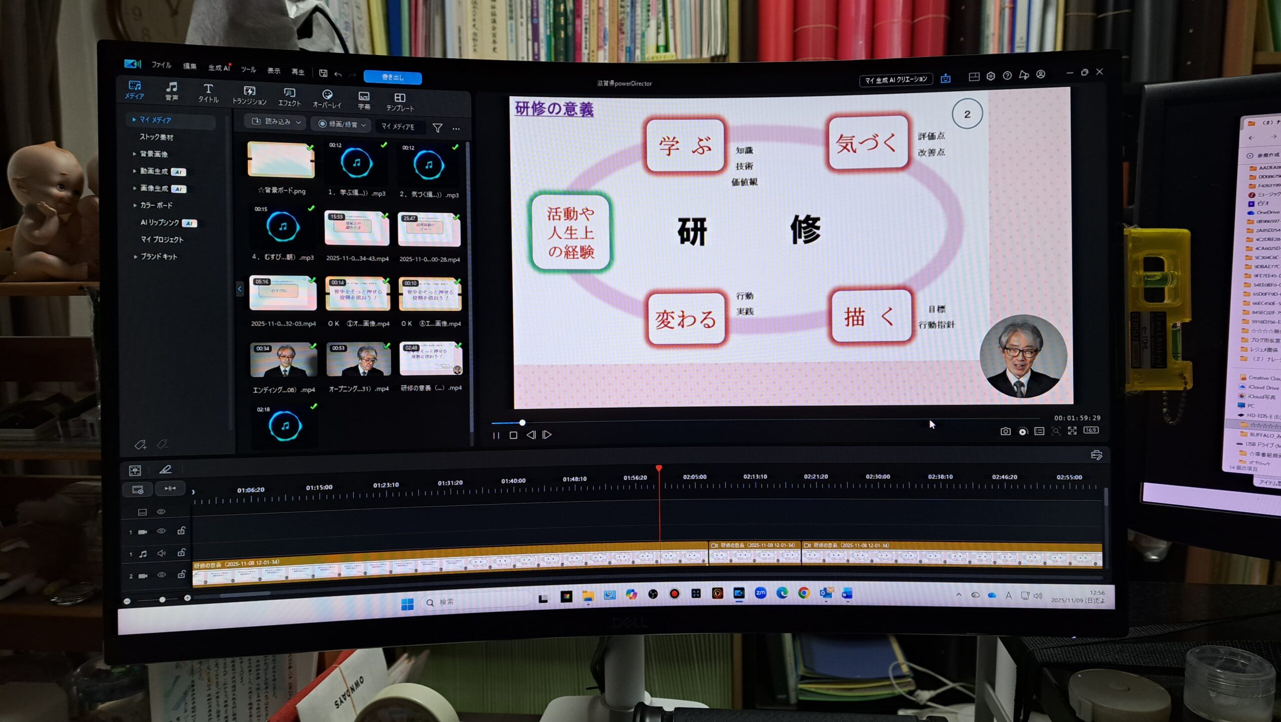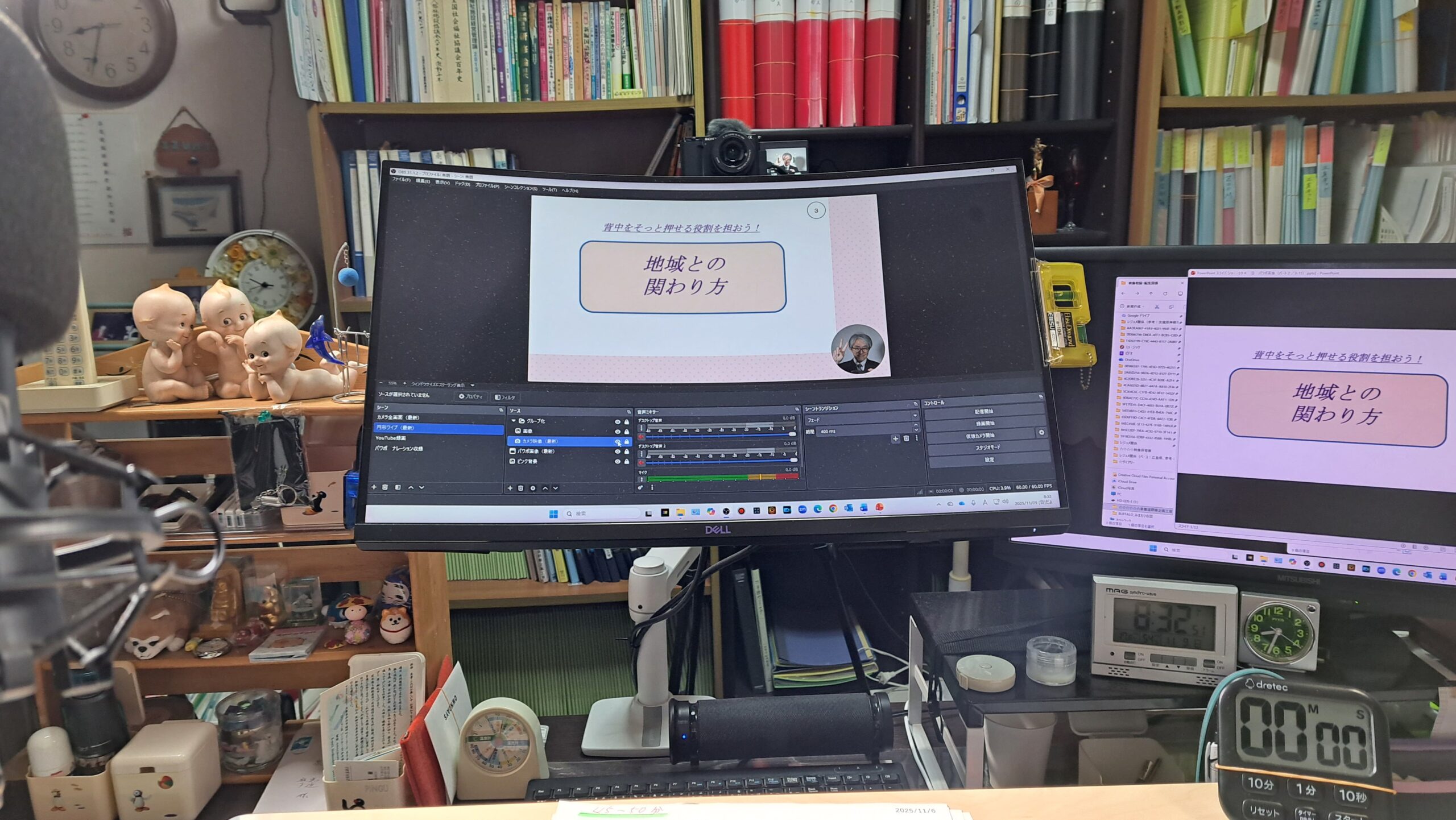モニターには、講義に使用するパワーポイント画像を表示させ、