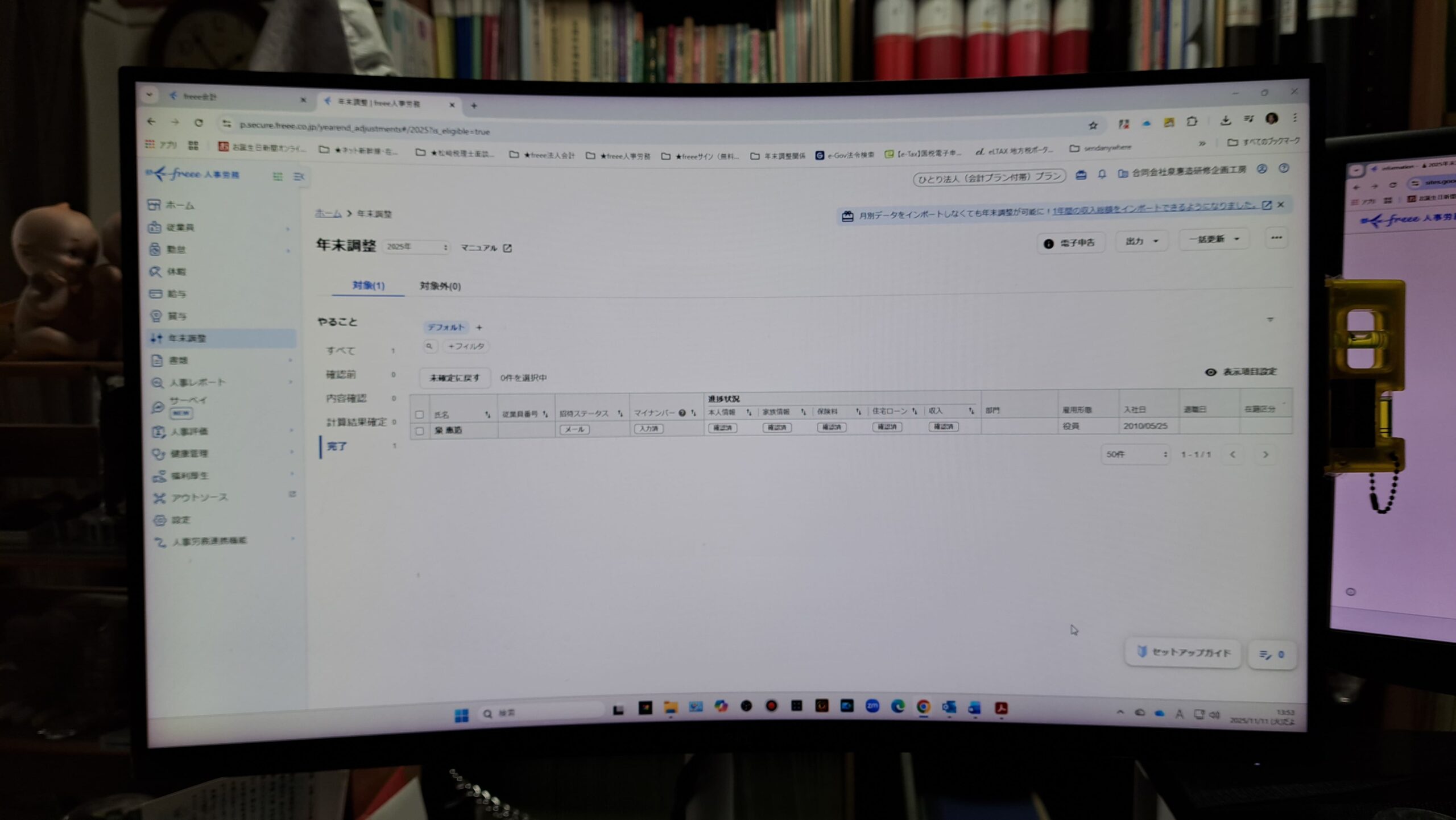 労務管理ソフトで、年末調整関係のデータを入力していきました。