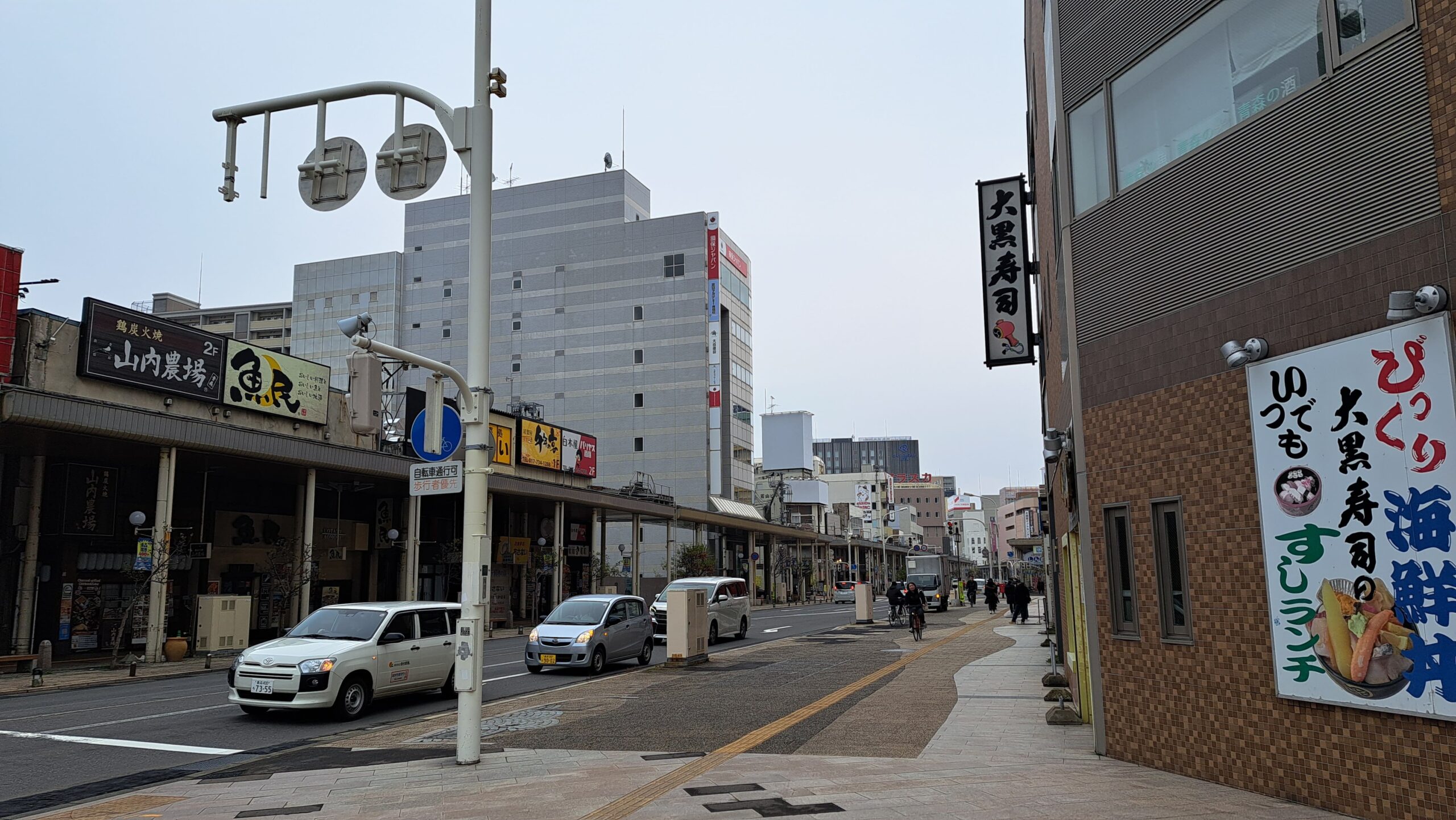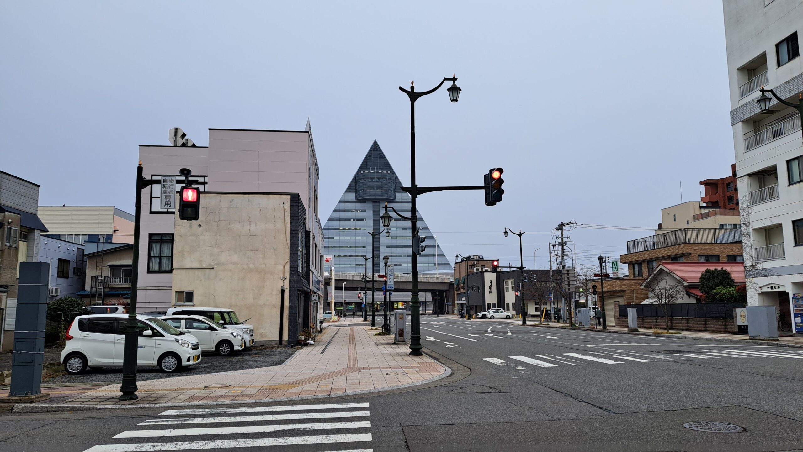 目の前にアスパムが迫ってきたところで、左折しますと、