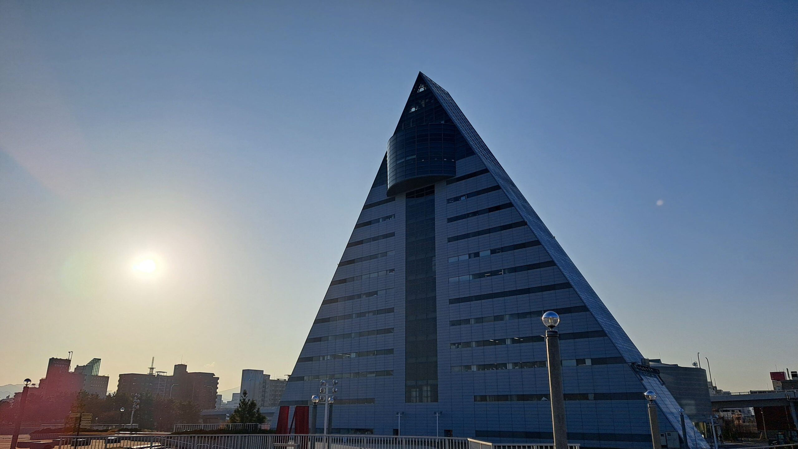 朝日にシルエットとして浮かび上がるアスパム。