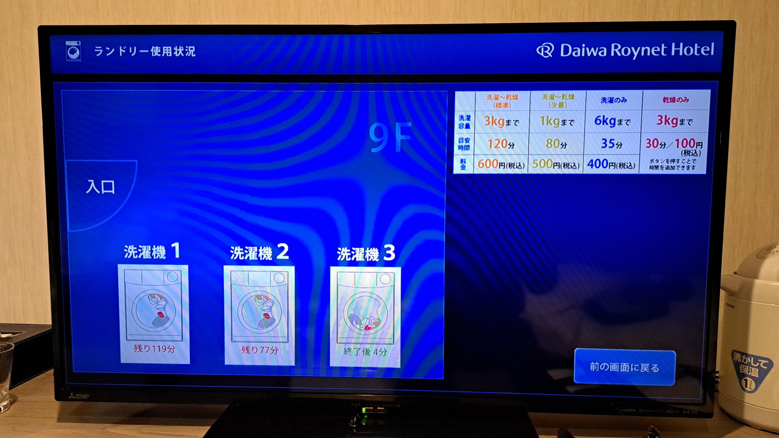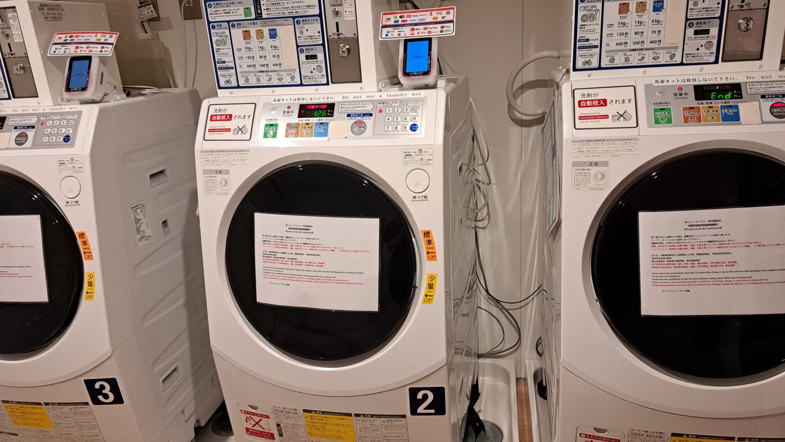 その後、期間中の衣類を館内のコインランドリーで洗濯。