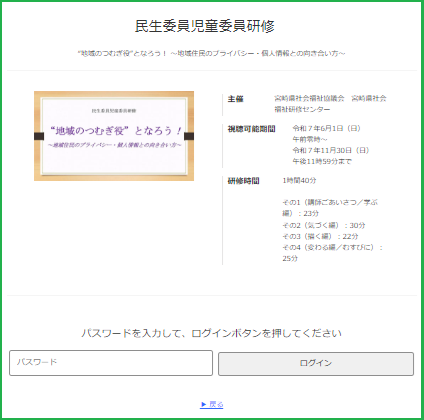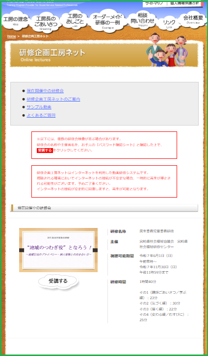 現在は、宮崎県の研修映像が配信中です。
