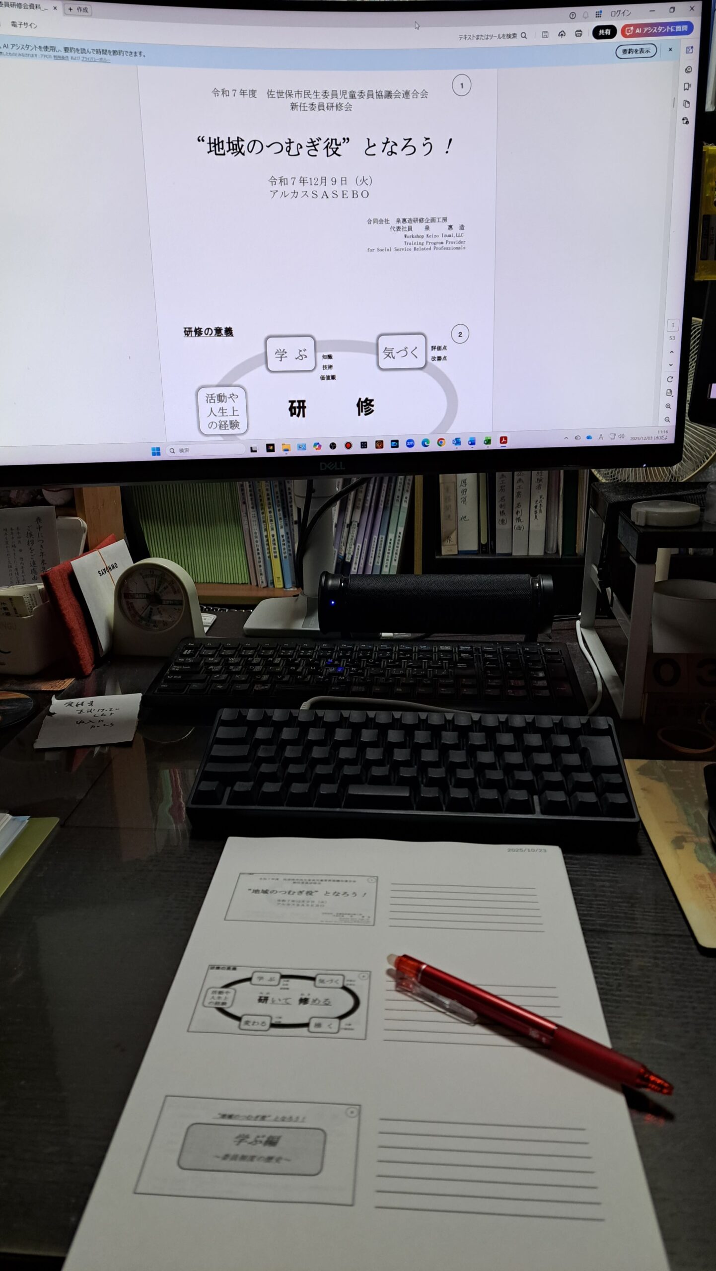 長崎県佐世保市の研修会にともなう赤入れ作業を進めました
