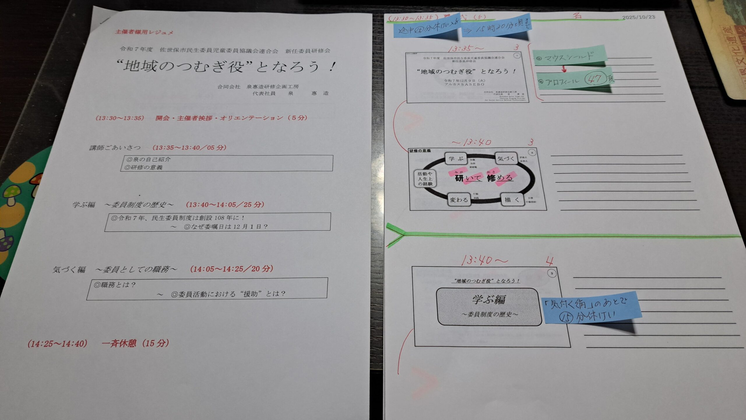 手元には、当日用のアンチョコ資料を準備。