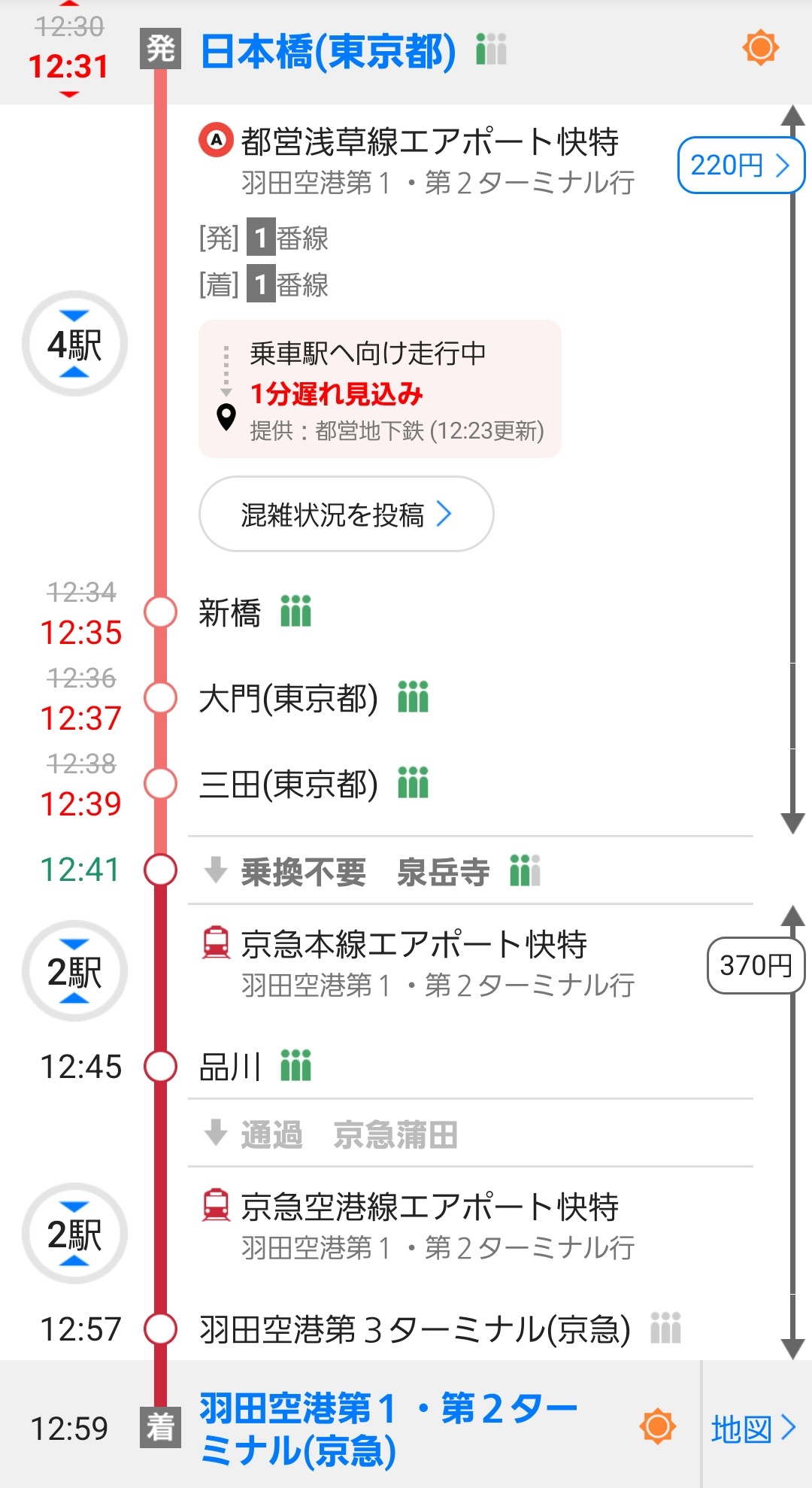 ほぼ遅延することなく、日本橋駅に到着しました。