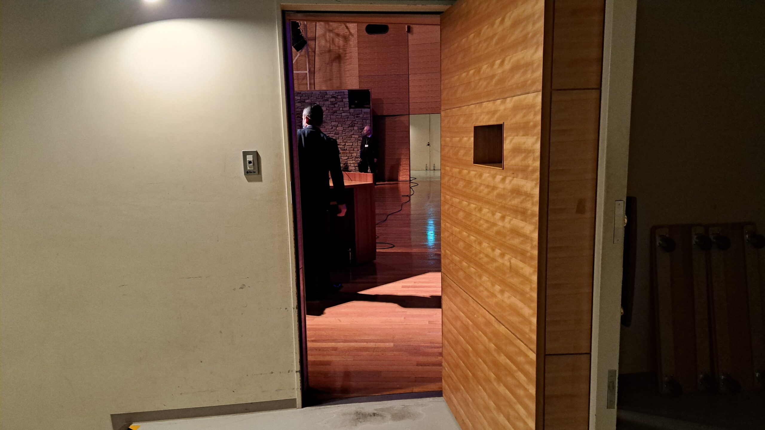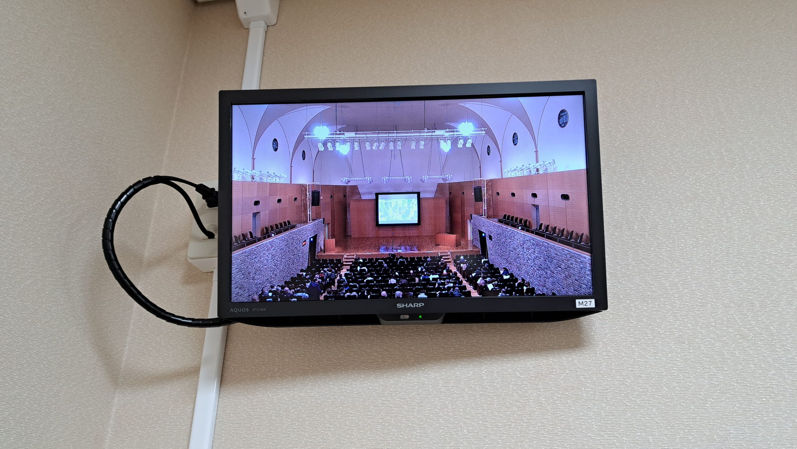 ホワイエにも、ご覧のように大きなモニターがありますね。
