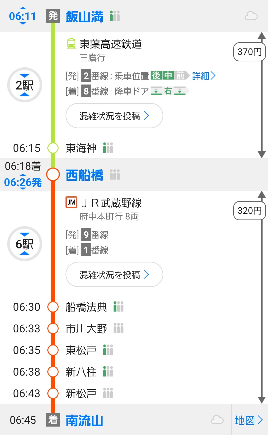 ここから、西船橋経由で、南流山まで向かいましょう。