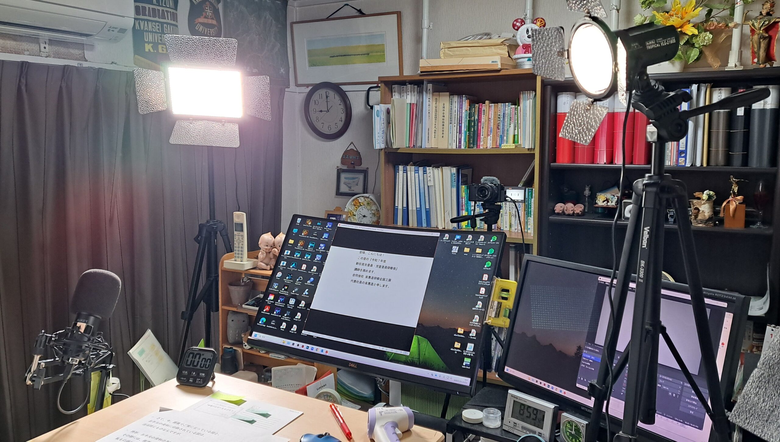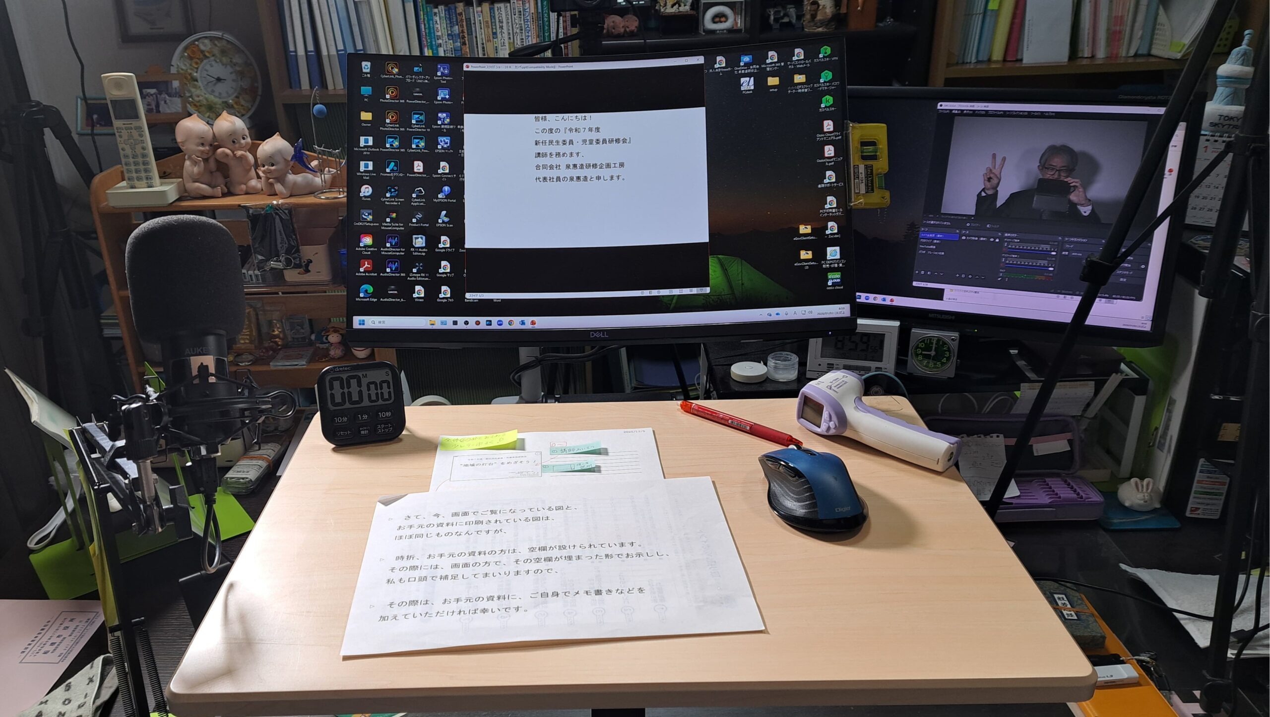 PCモニター前に演台を設け、