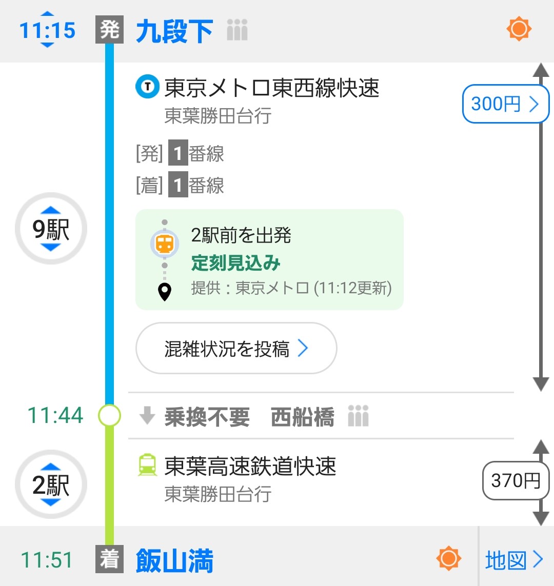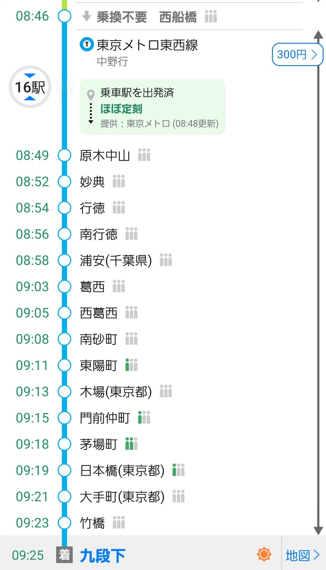 50分弱で九段下まで移動しました。