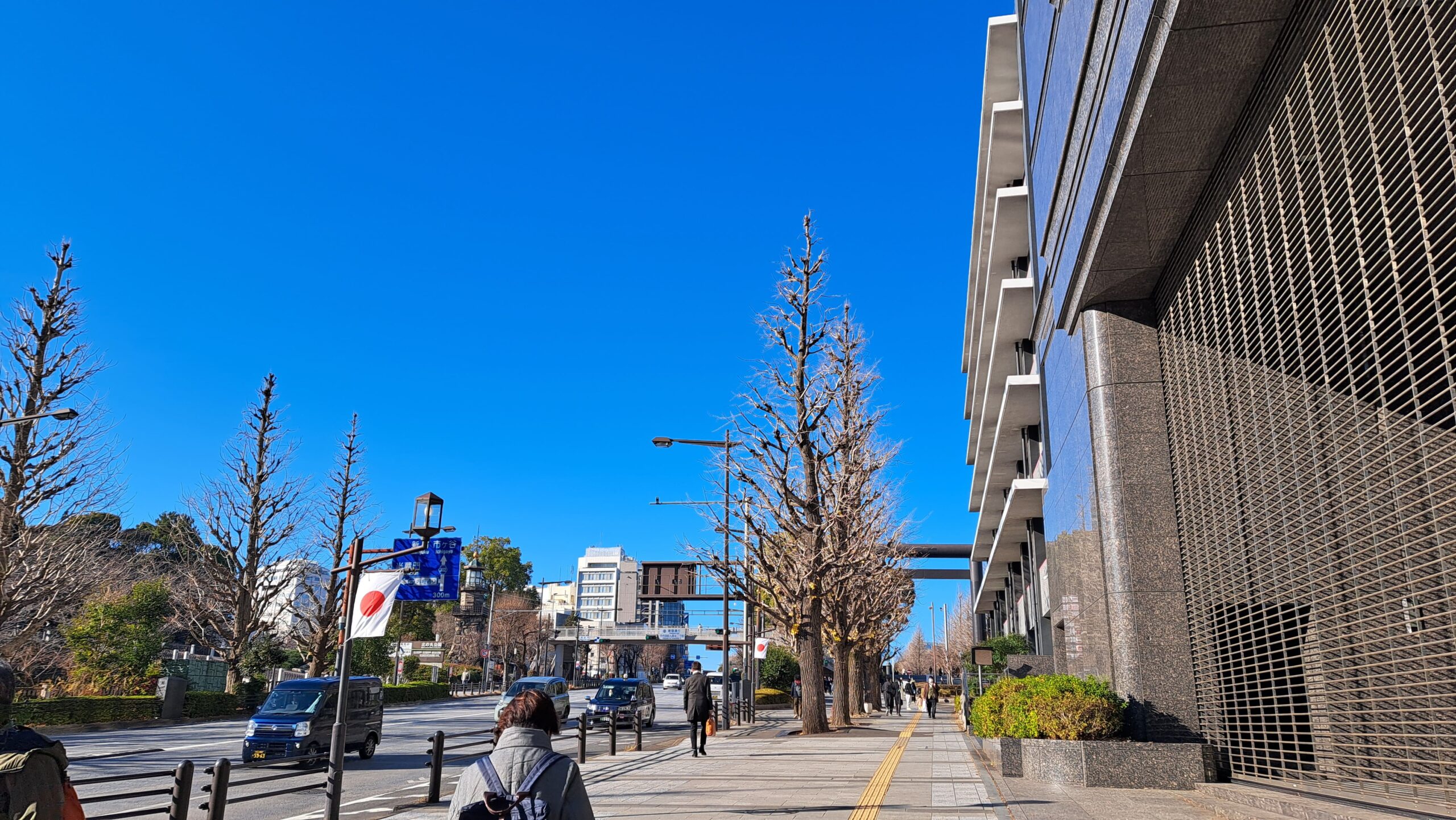 坂道を登りながら左側を見ると、皇居の敷地が見えてきますが、