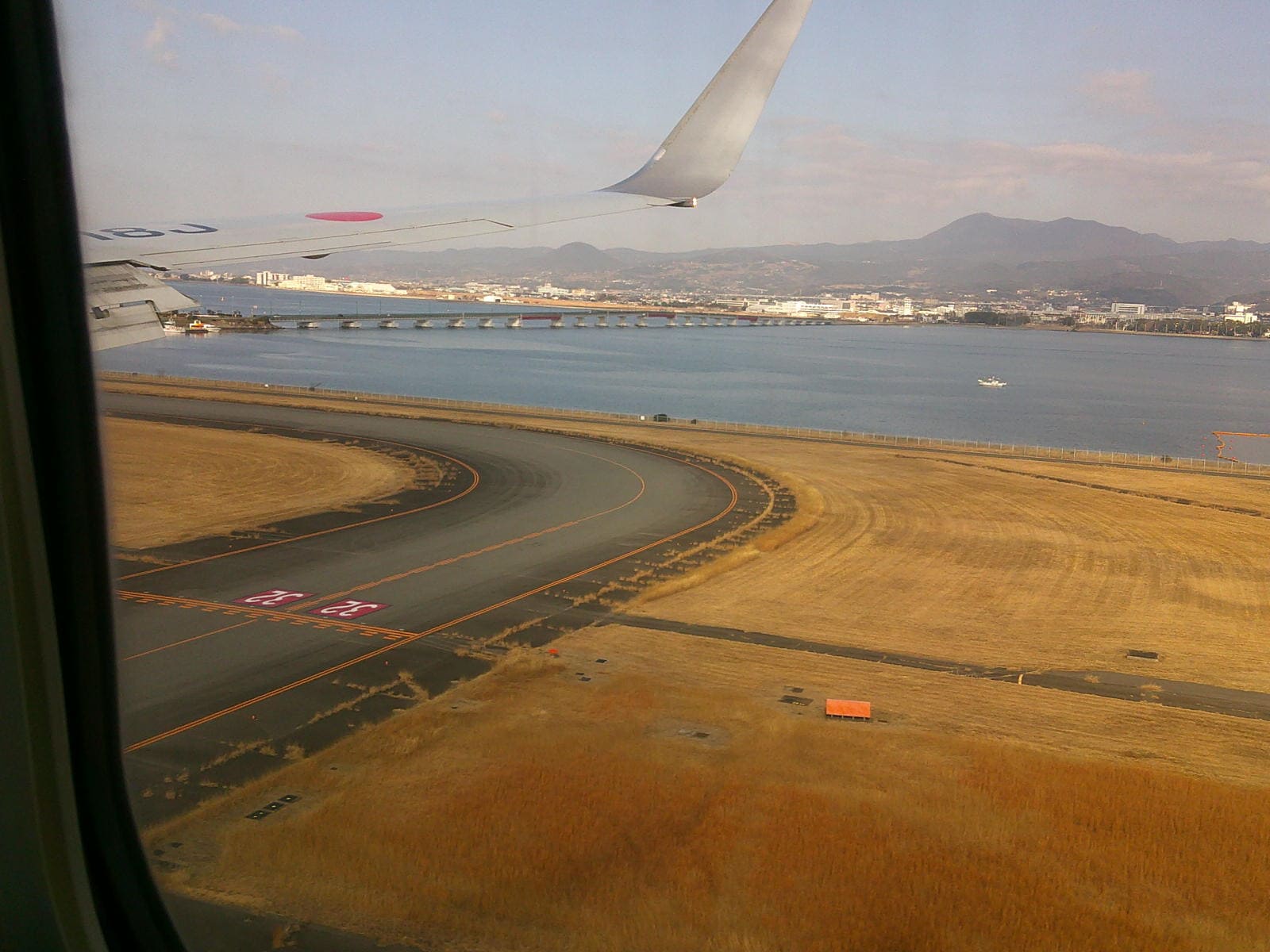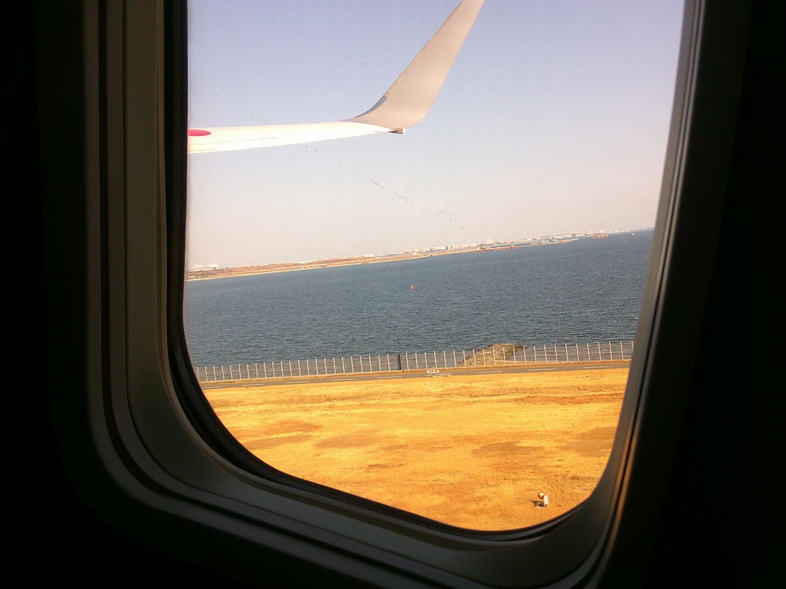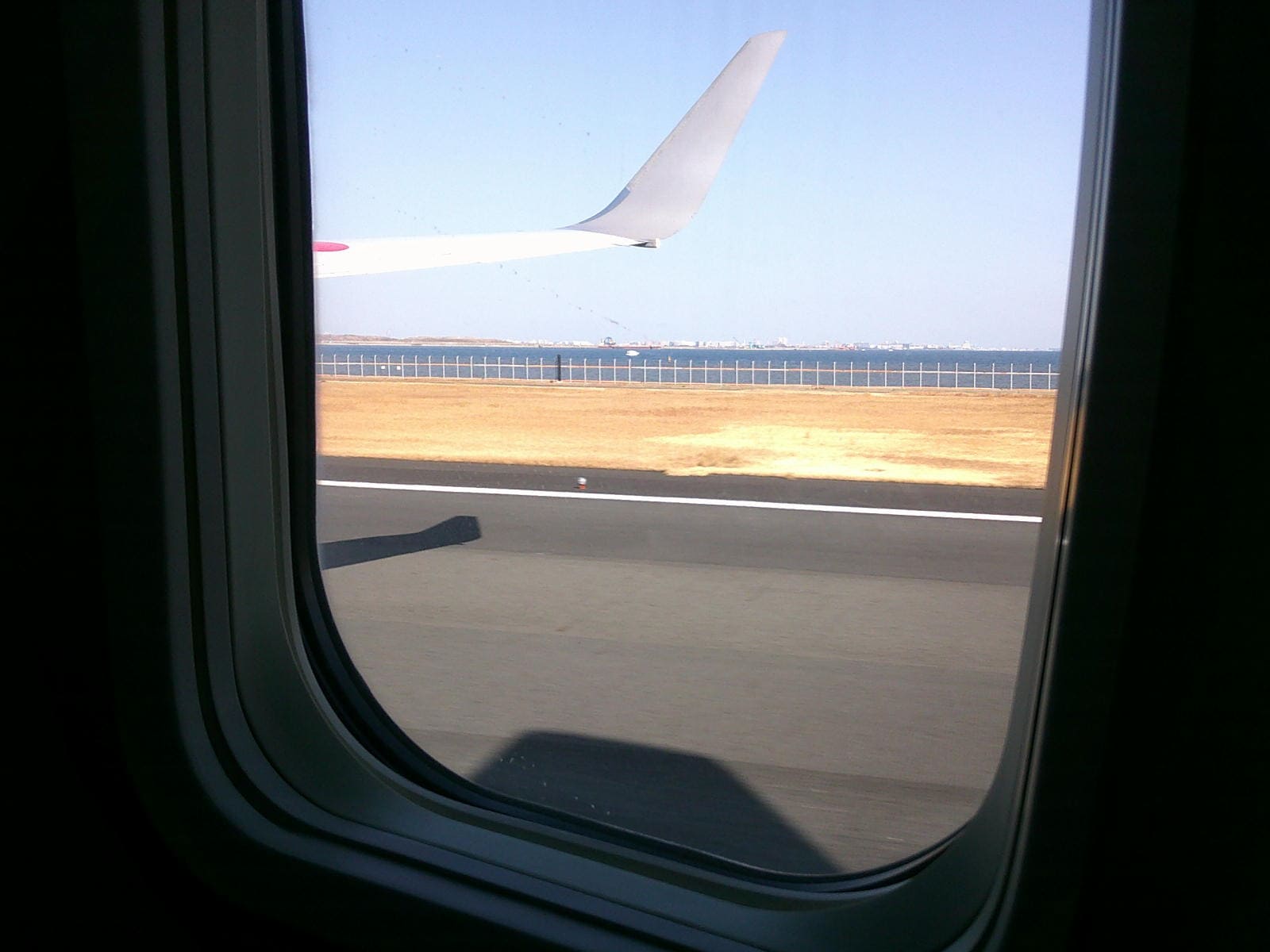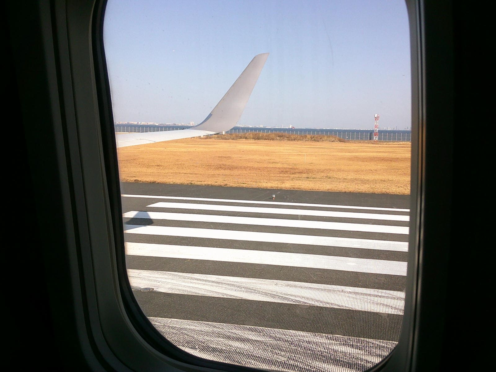 定刻どおり、JAL便は駐機場を離れ、滑走路へ。