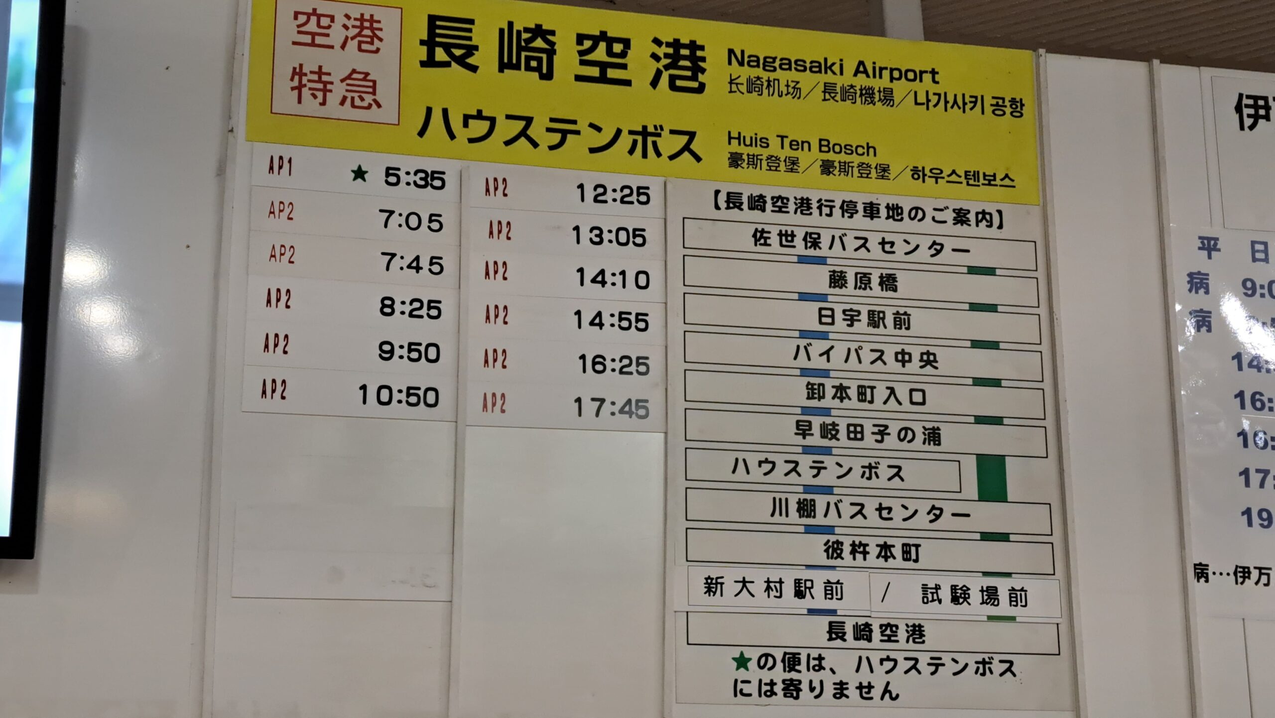 明日の復路、長崎空港行きのバス時刻を確認すると、