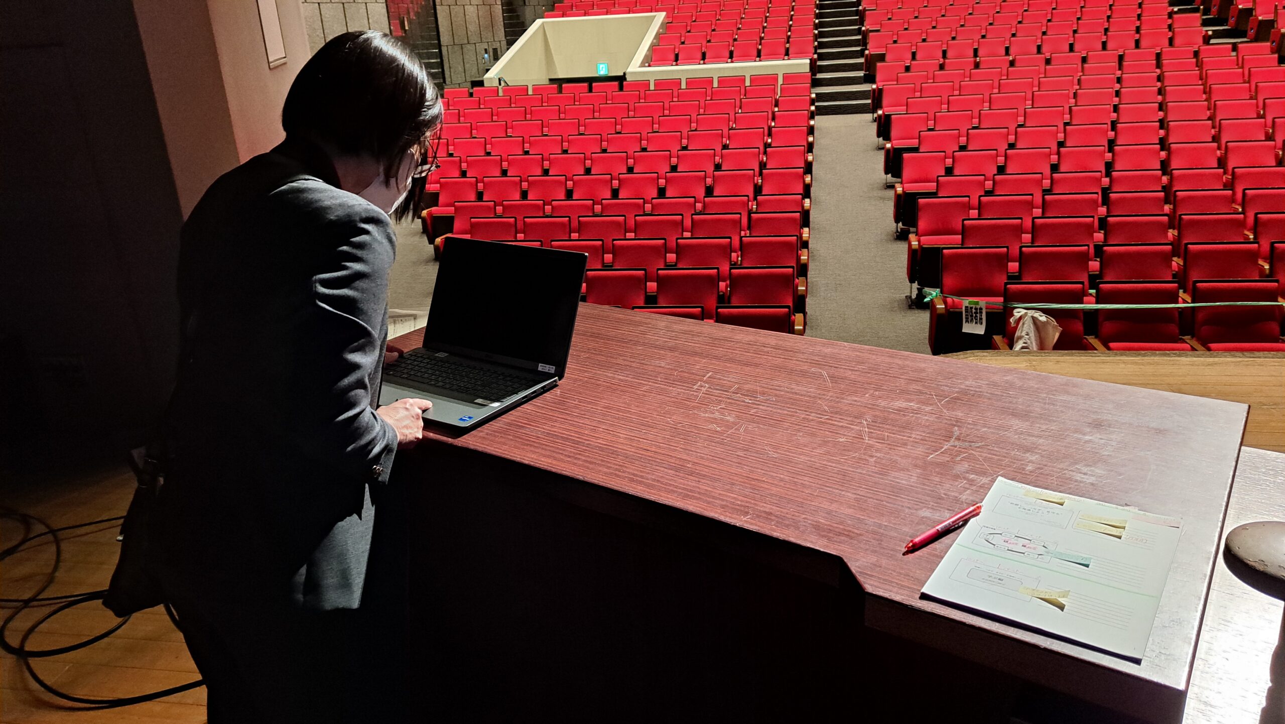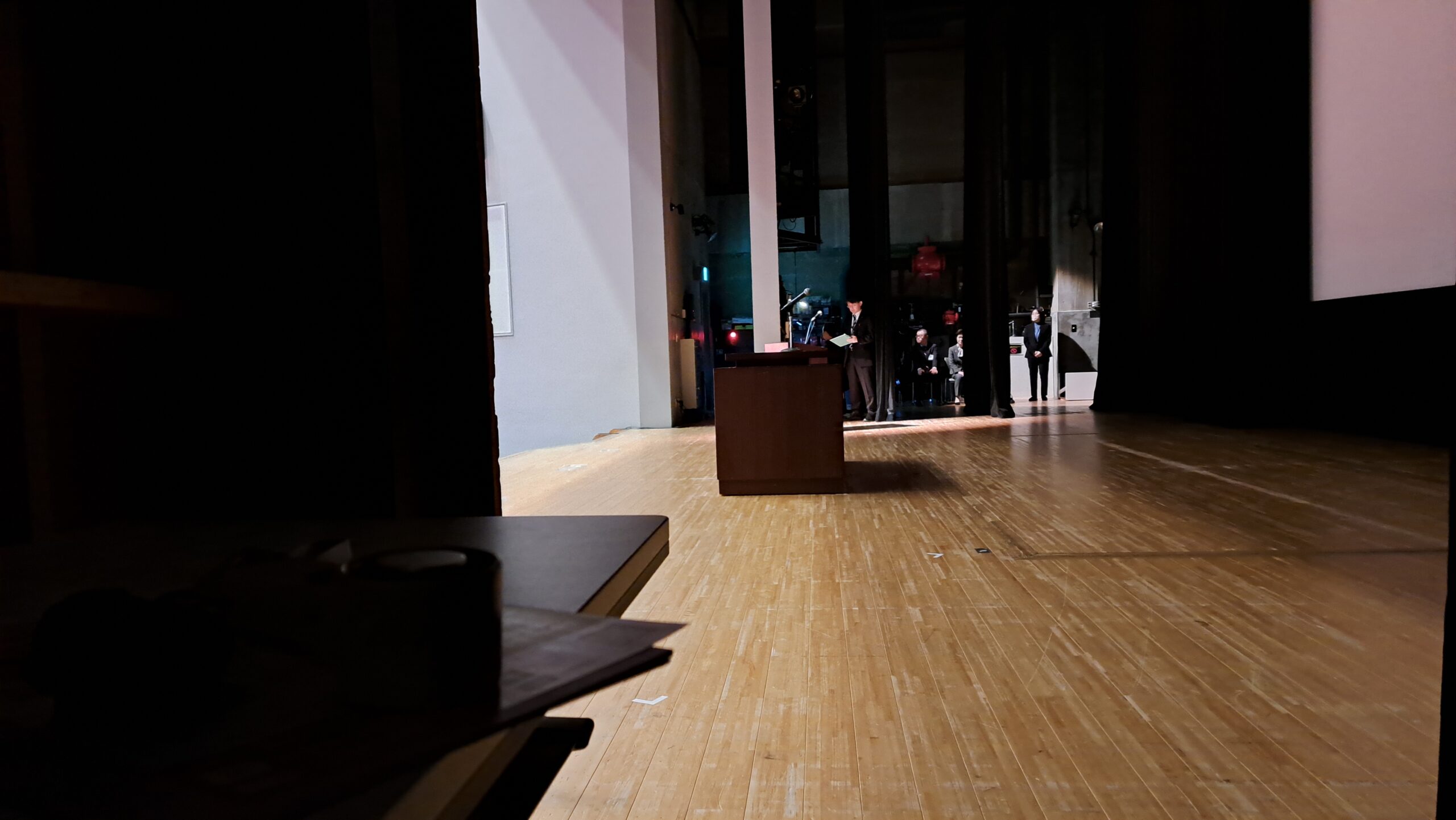 その時点では、舞台袖で、主催者様の御挨拶を拝聴しました。