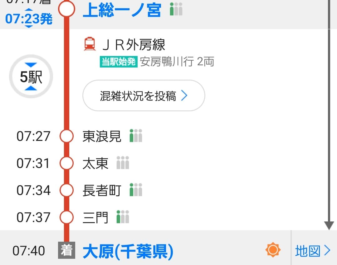上総一ノ宮で乗り換えた電車は、