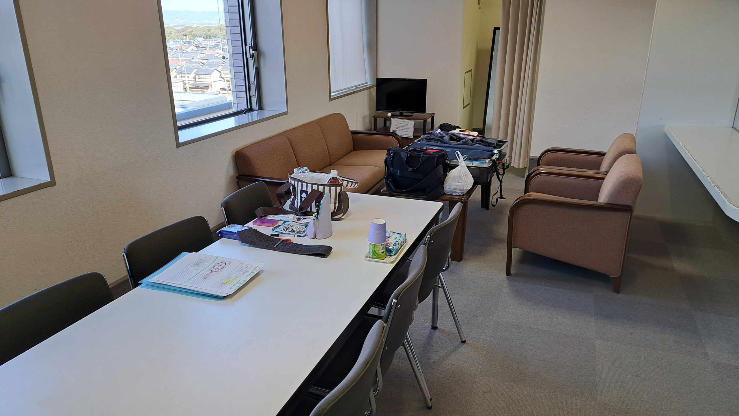 まずは控え室に案内していただき、荷解きを進めました。