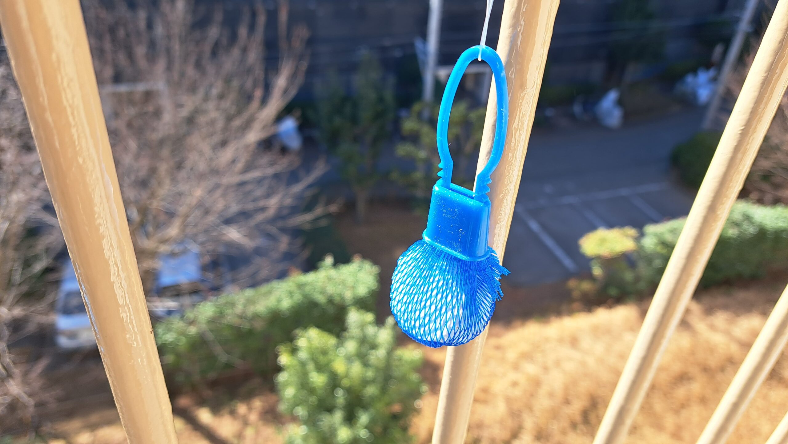 ベランダの桟部分に、そのまま吊り下げればOK。