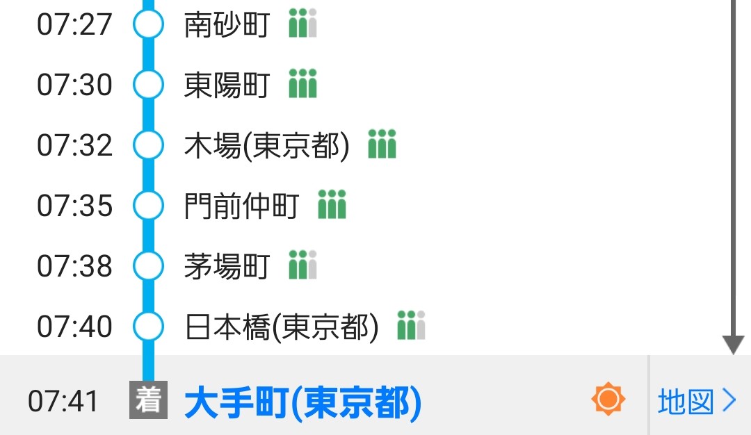 遅延なく、大手町駅までやってきました。