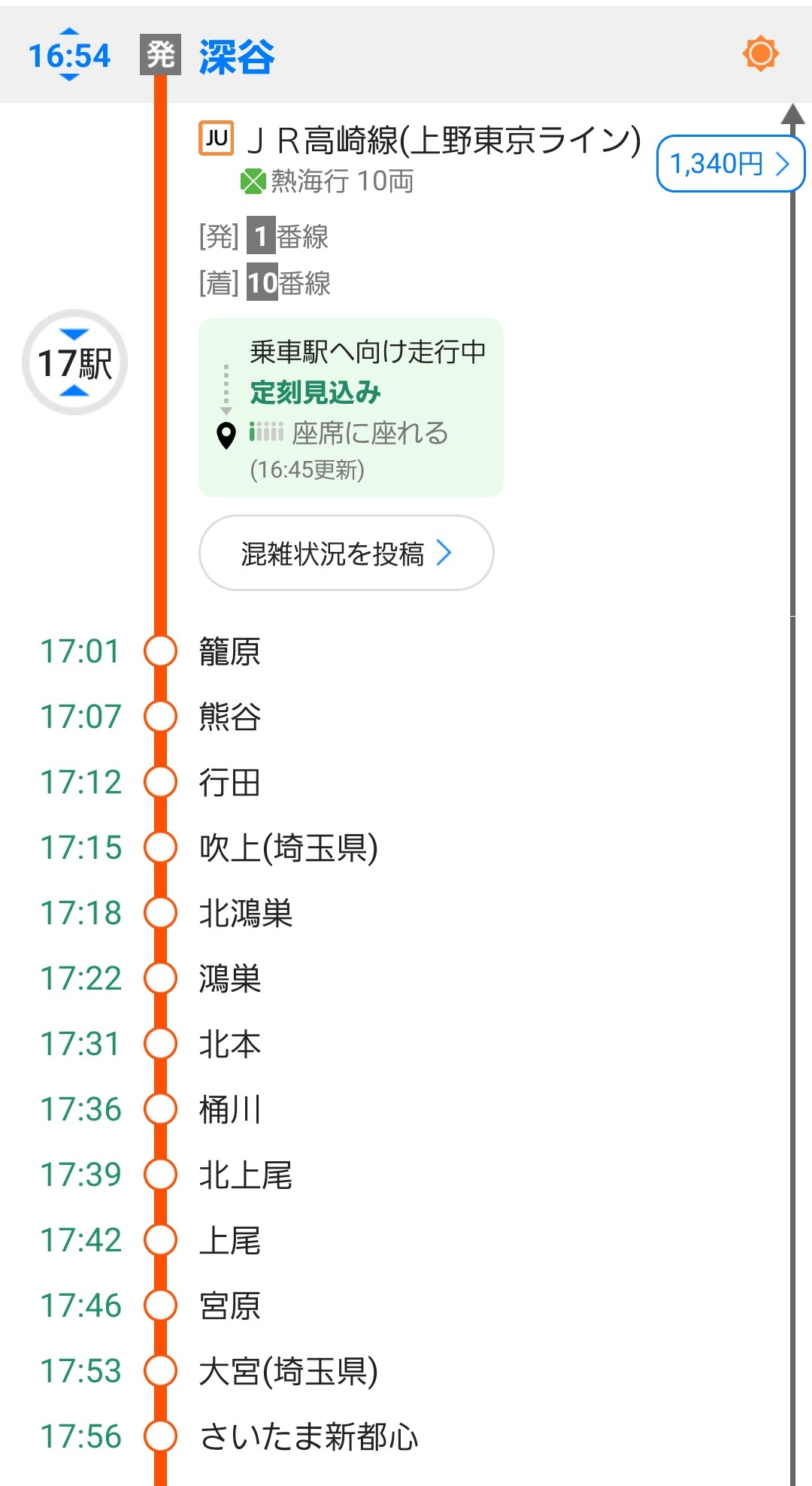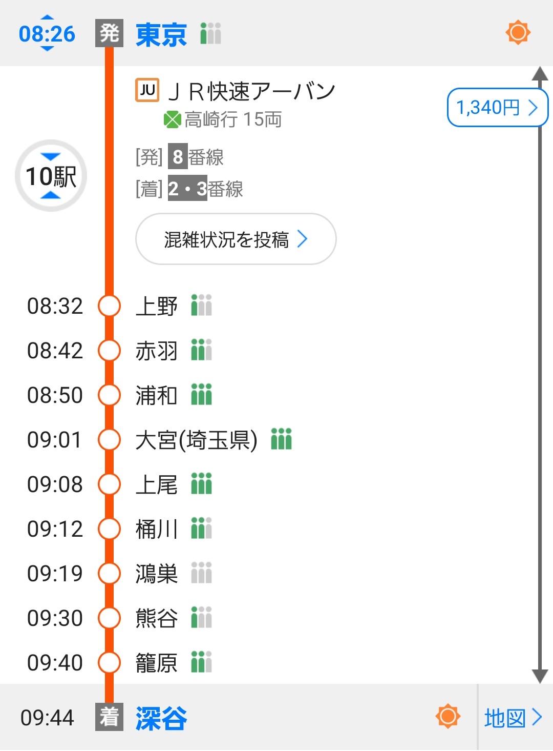 深谷駅までは、1時間15分ほどの旅です。