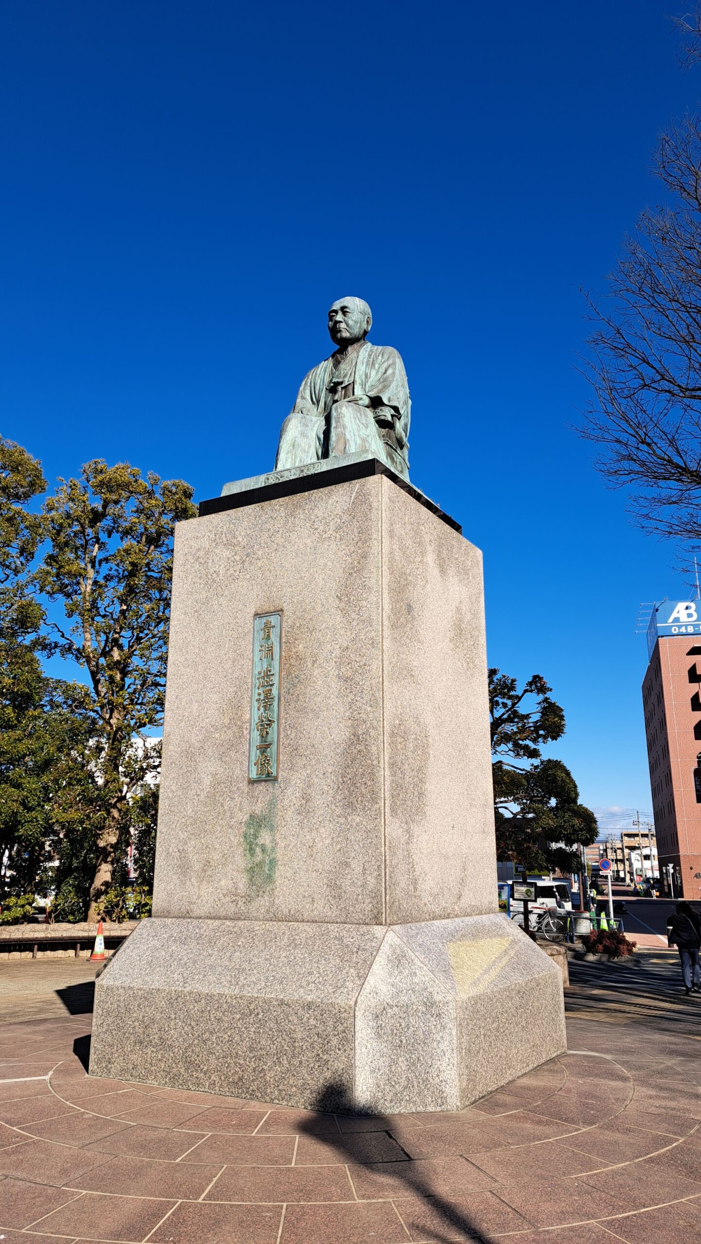 駅前には、渋沢栄一の銅像がありますし、