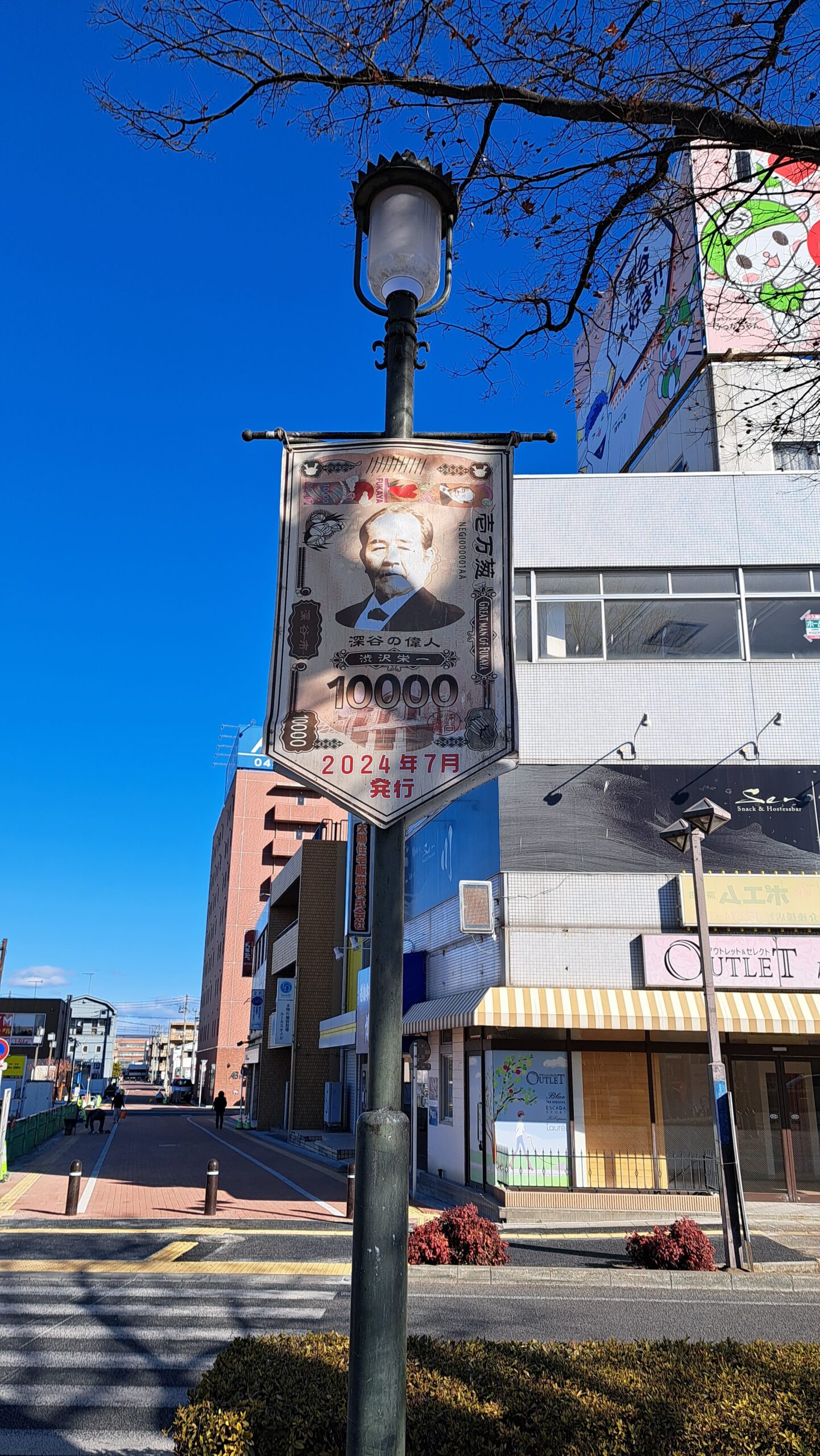 お札発行を記念したノボリもありました。
