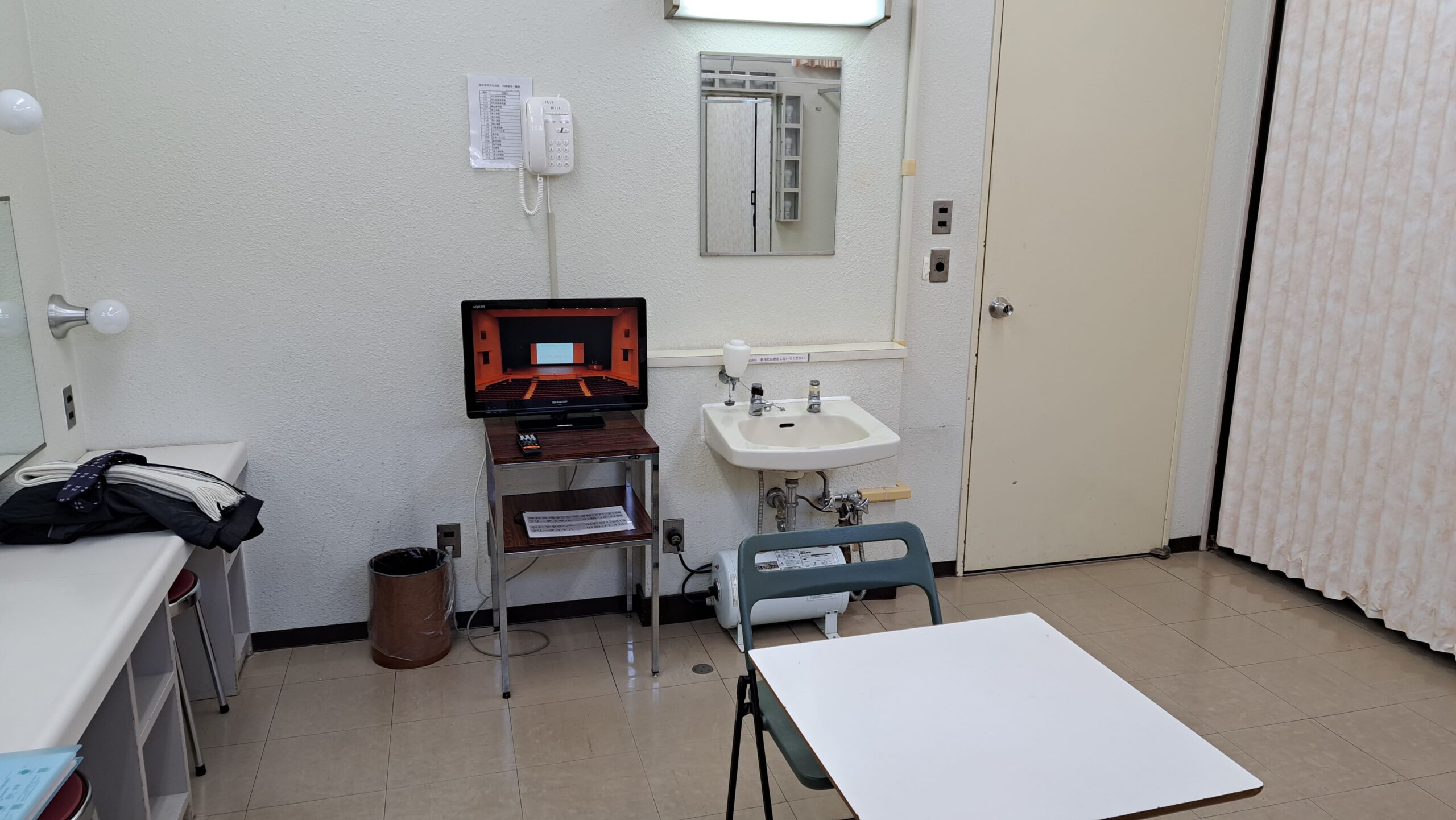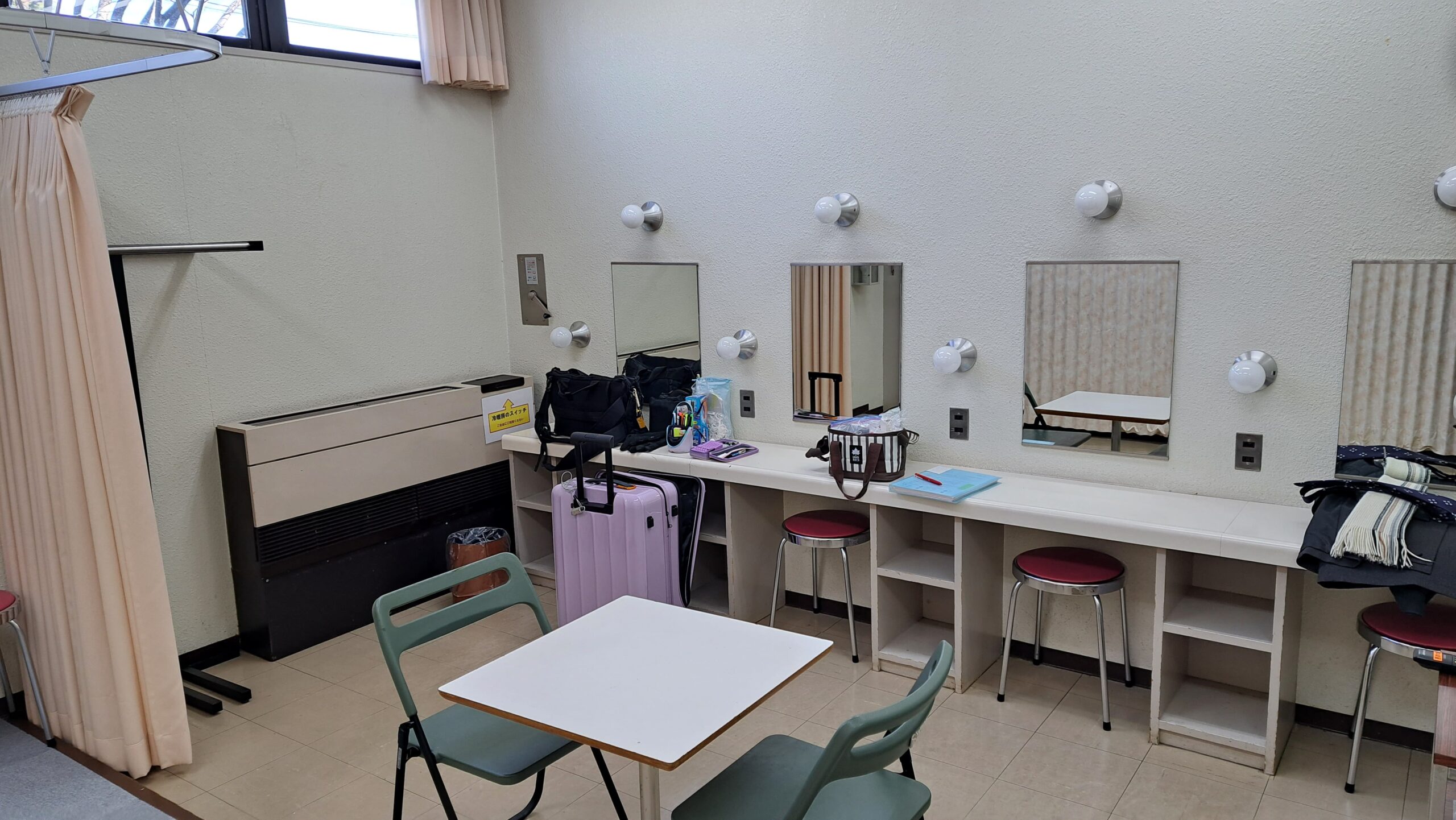 控え室で荷解きを進めます。