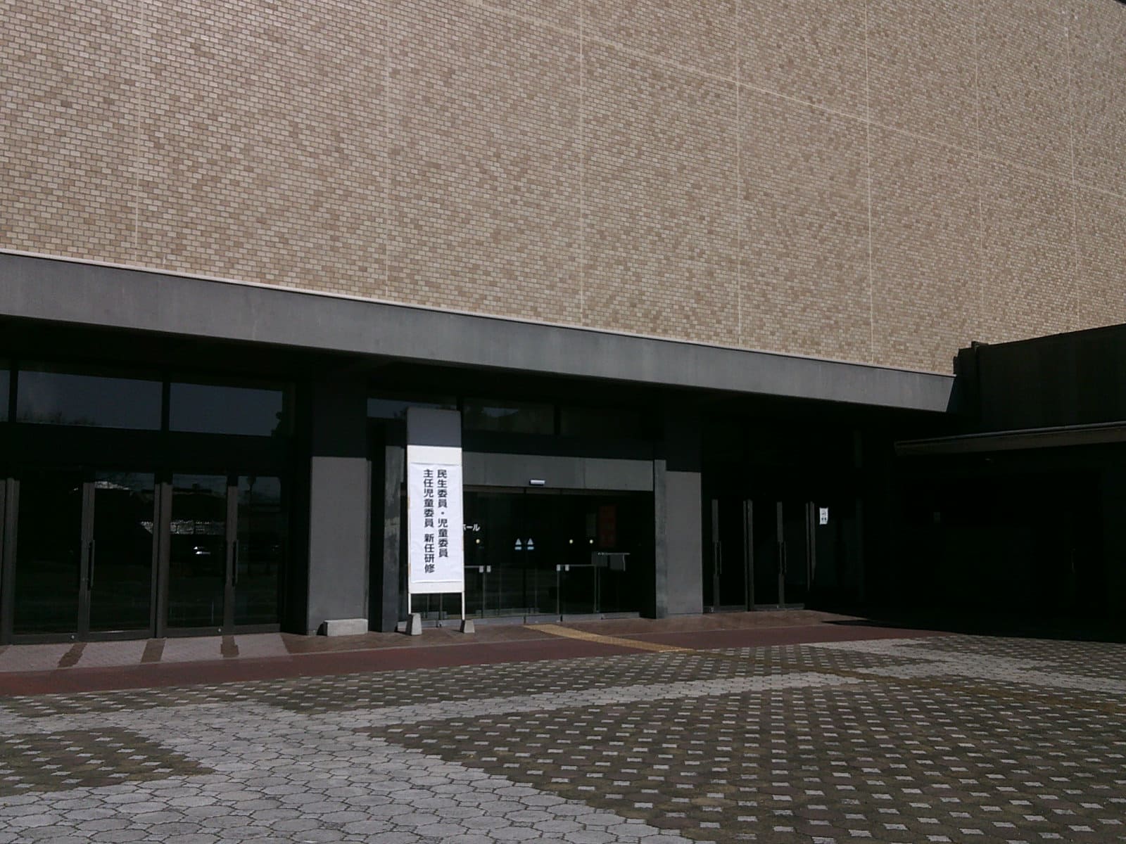 大ホール玄関には、すでに研修会の看板が立っています。