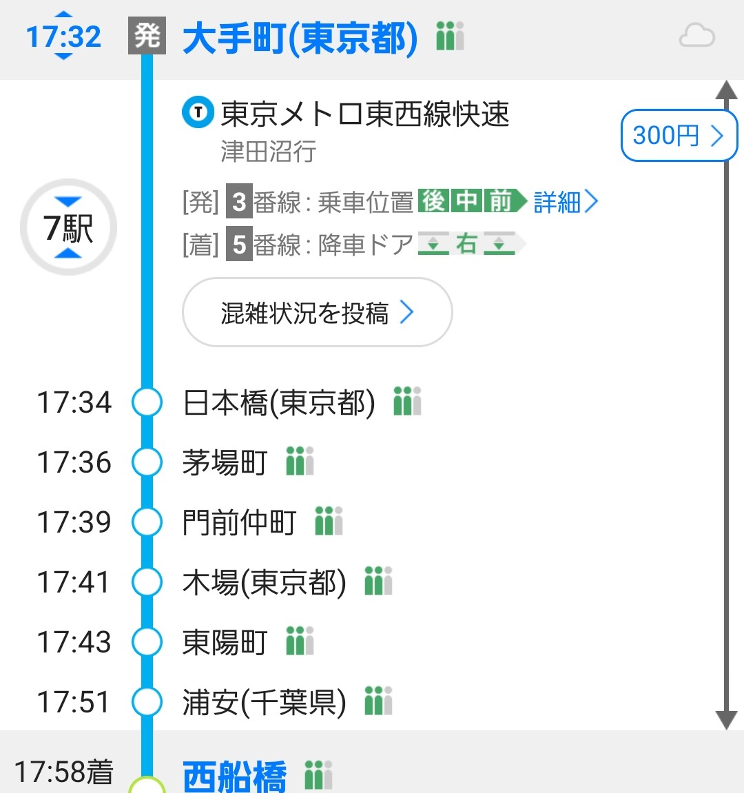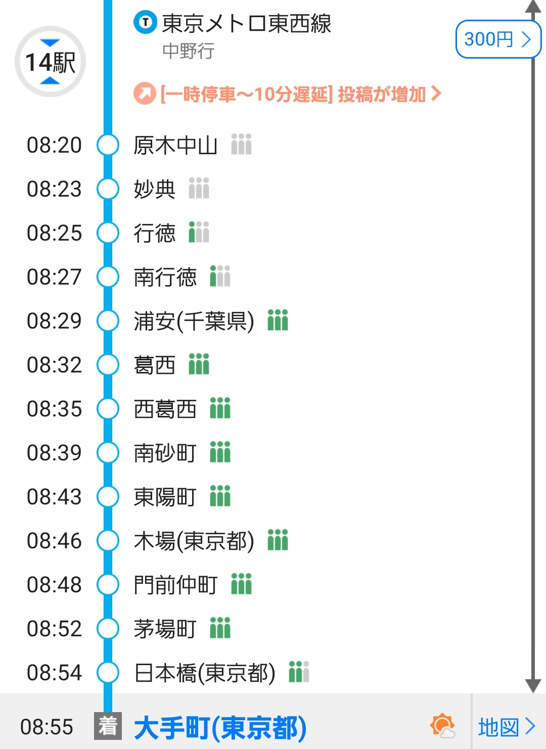 ほぼ遅延もなく大手町駅に到着。