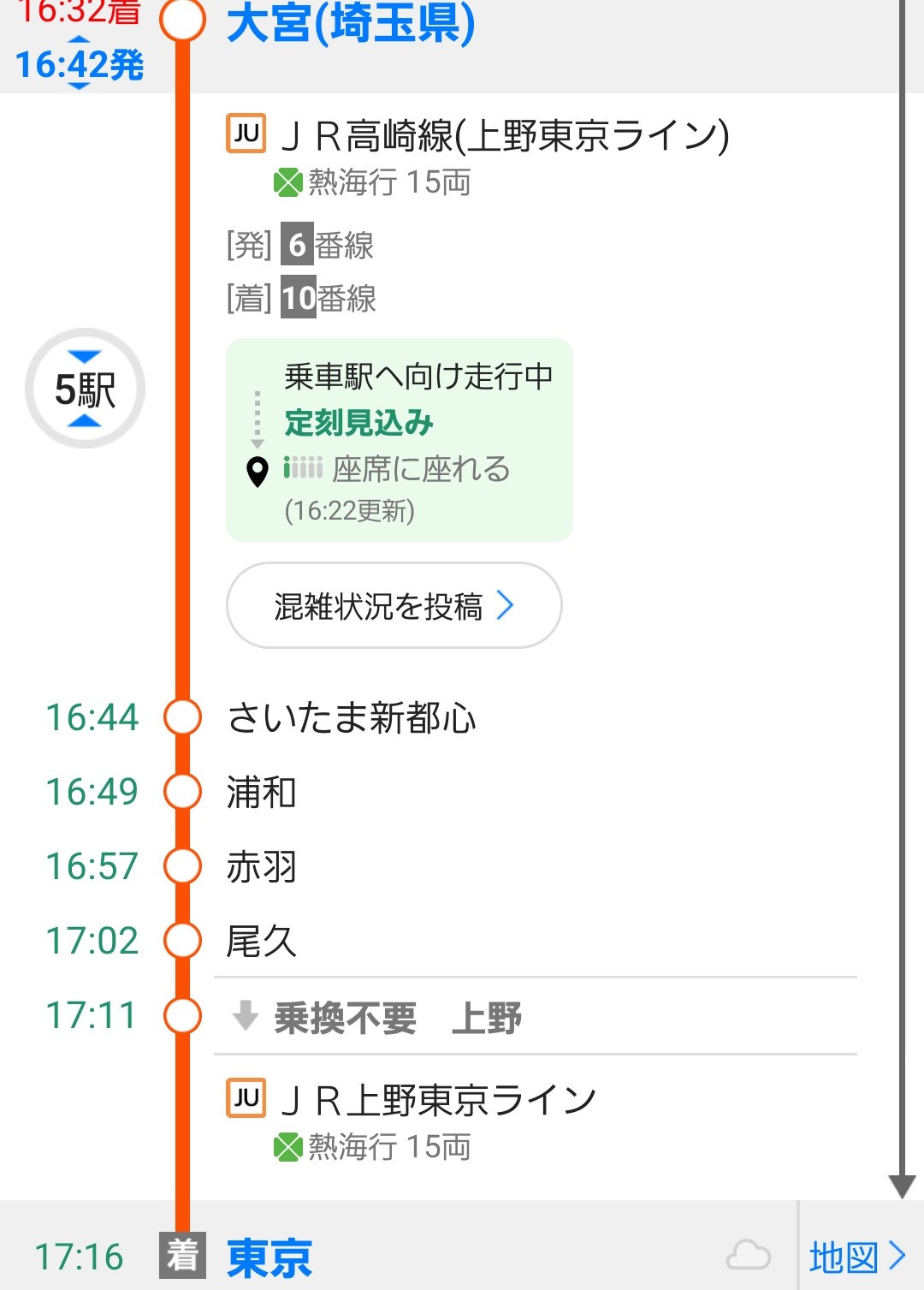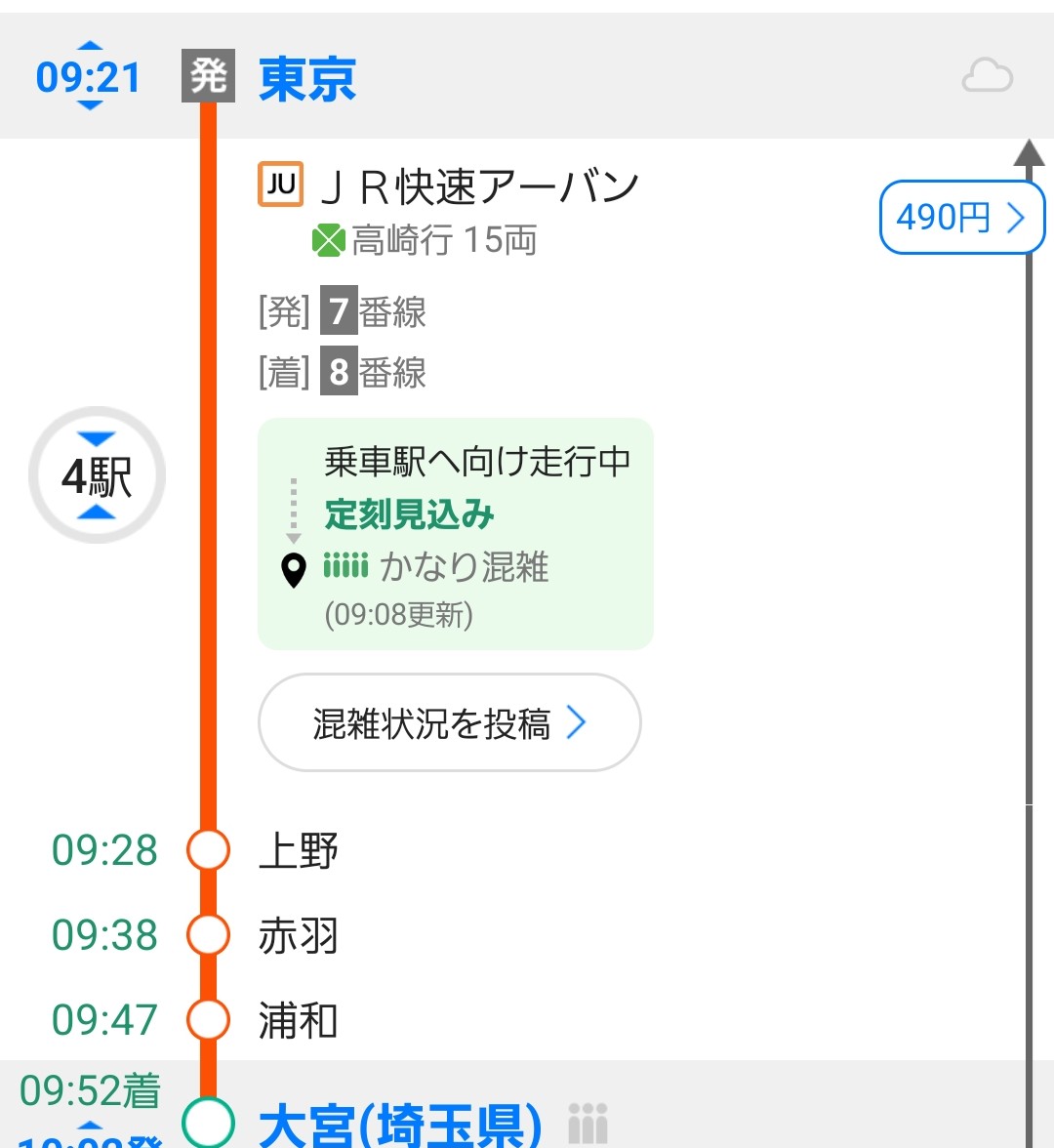 ここからは、まず高崎線で大宮駅まで移動します。
