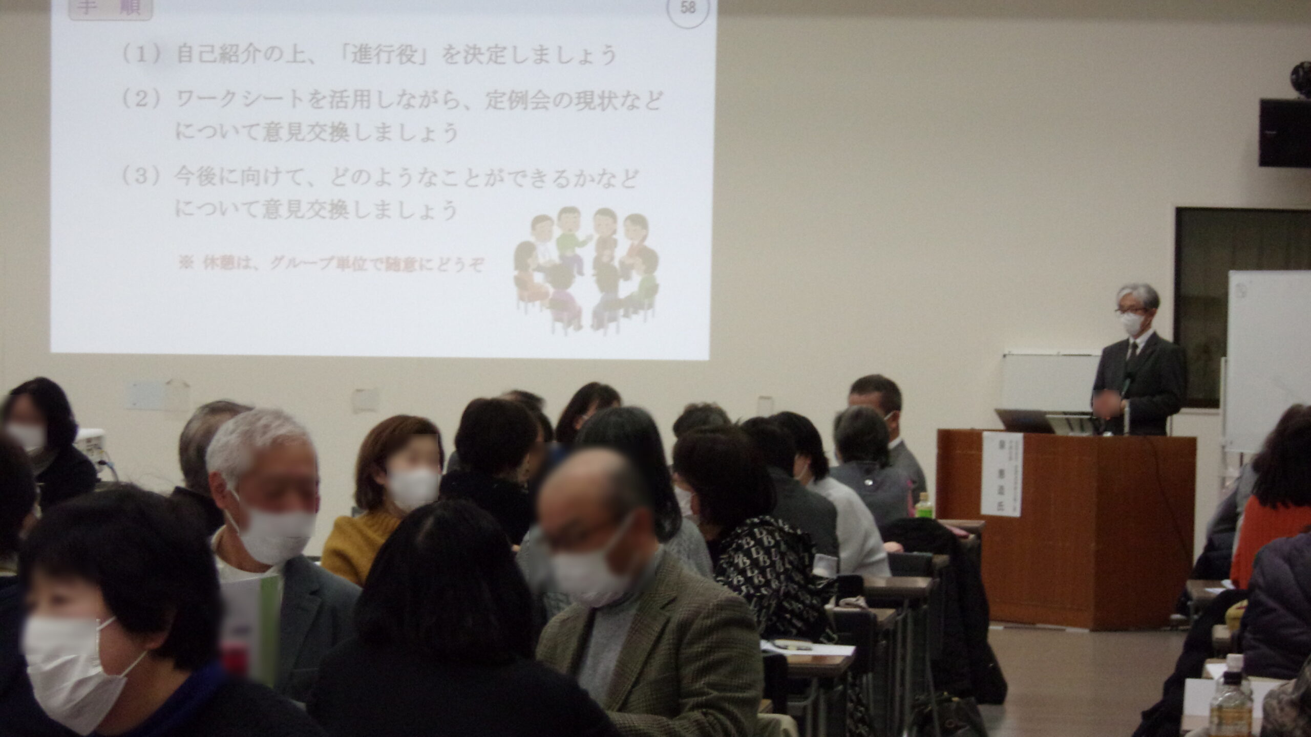 前後の席の皆様で少人数のグループを作っていただき、