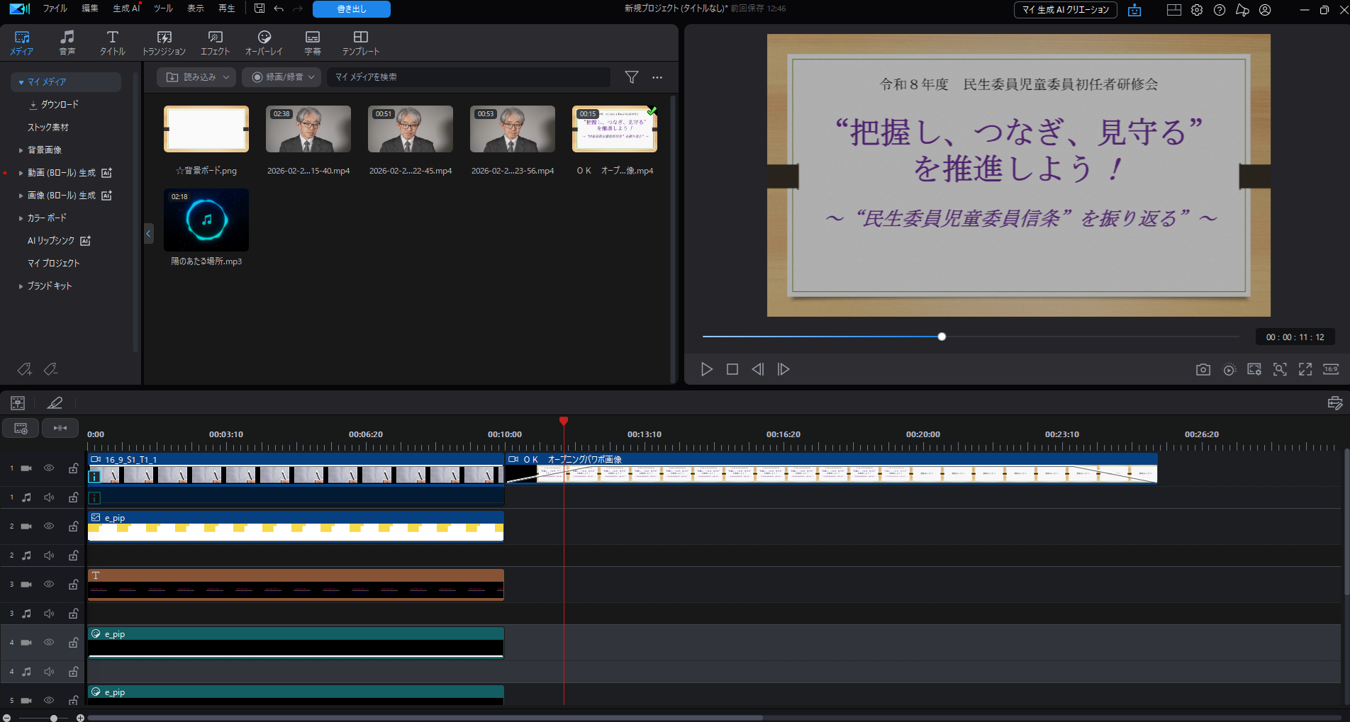 タグ:OBS, powerDirector, オープニングシーン, 初任者研修会, 収録, 新潟県, 映像, 民生委員児童委員協議会, 研修企画工房ネット, 編集