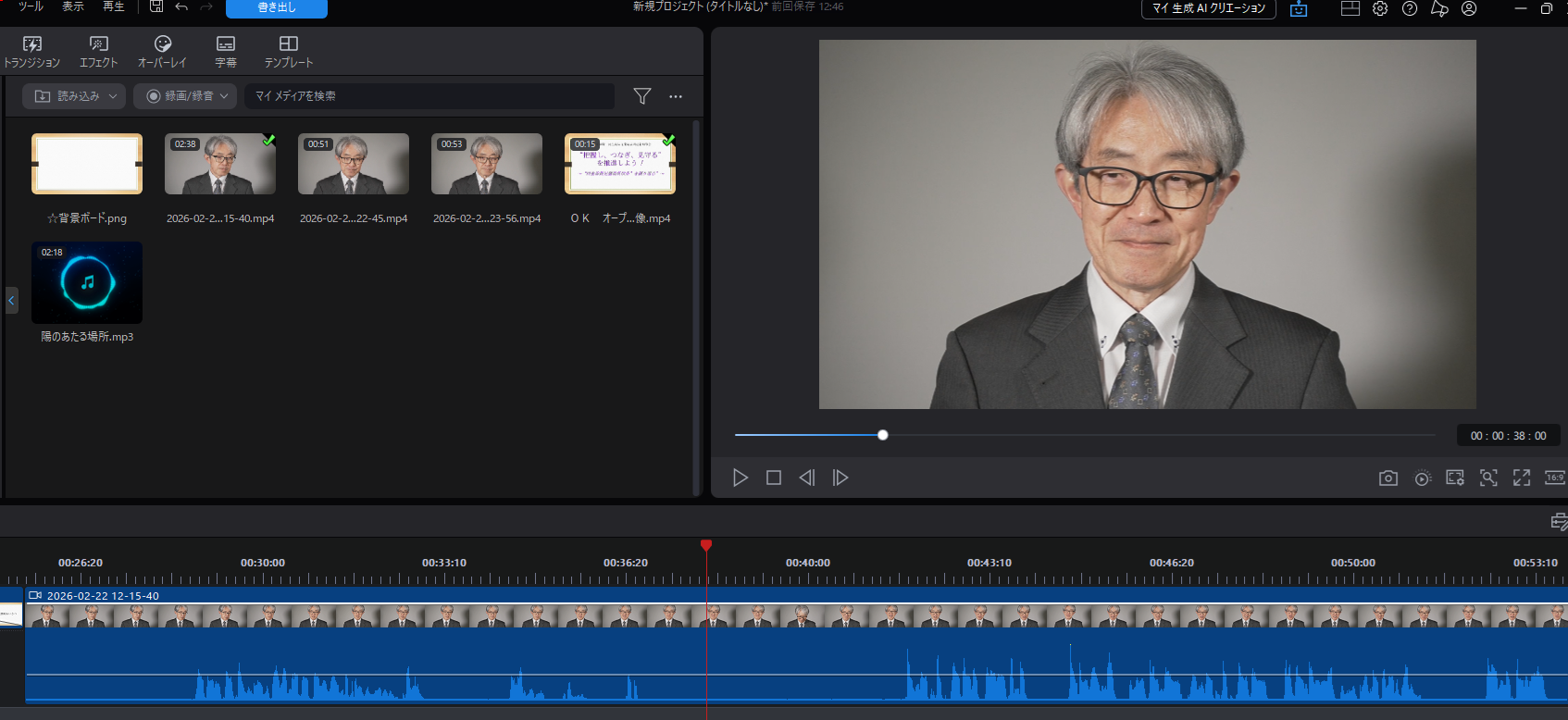 この映像のあとに、講義風景などをドッキングさせていきます。