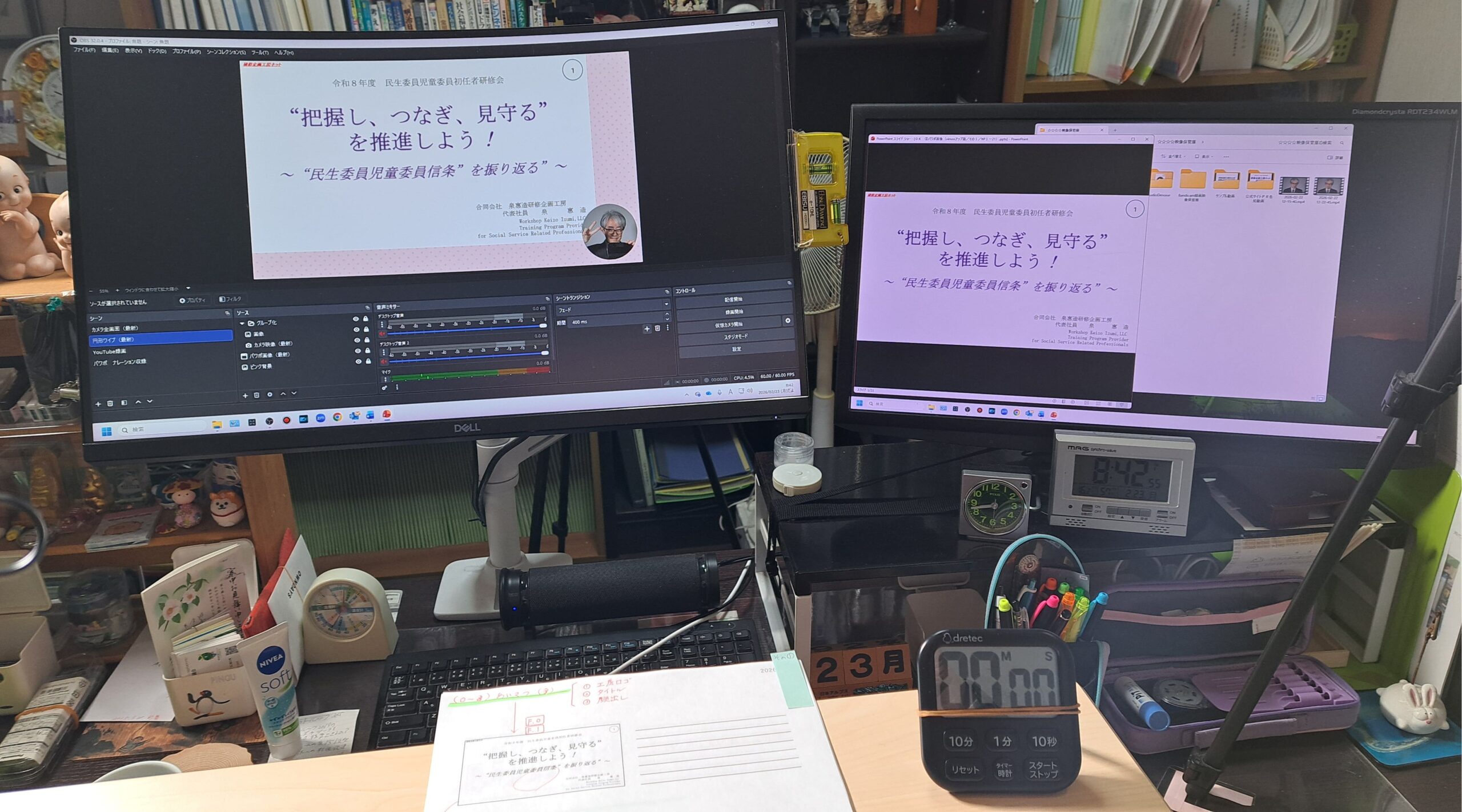 そこにアンチョコ資料とストップウォッチをセット。
