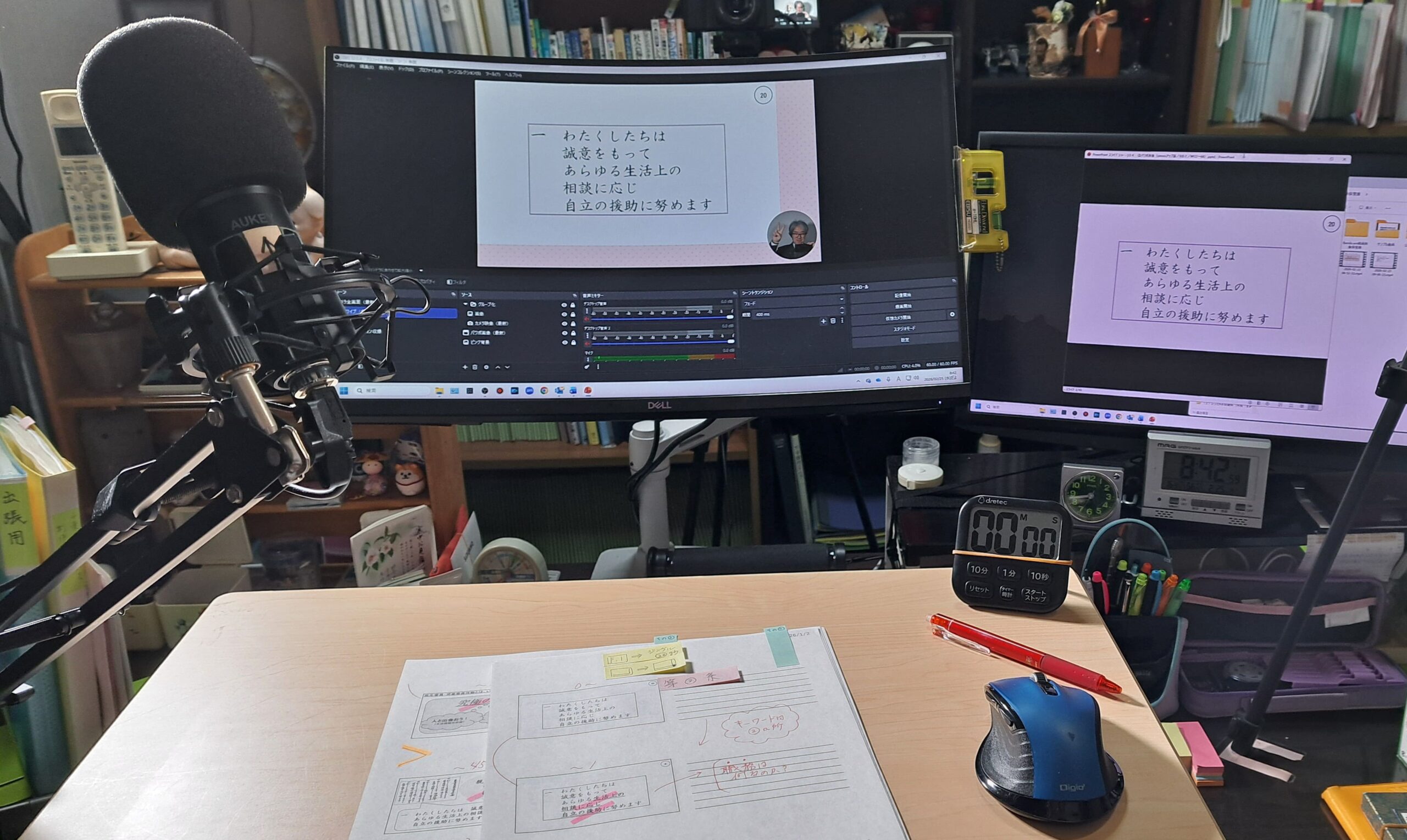 そこにアンチョコ資料とストップウォッチをセット。