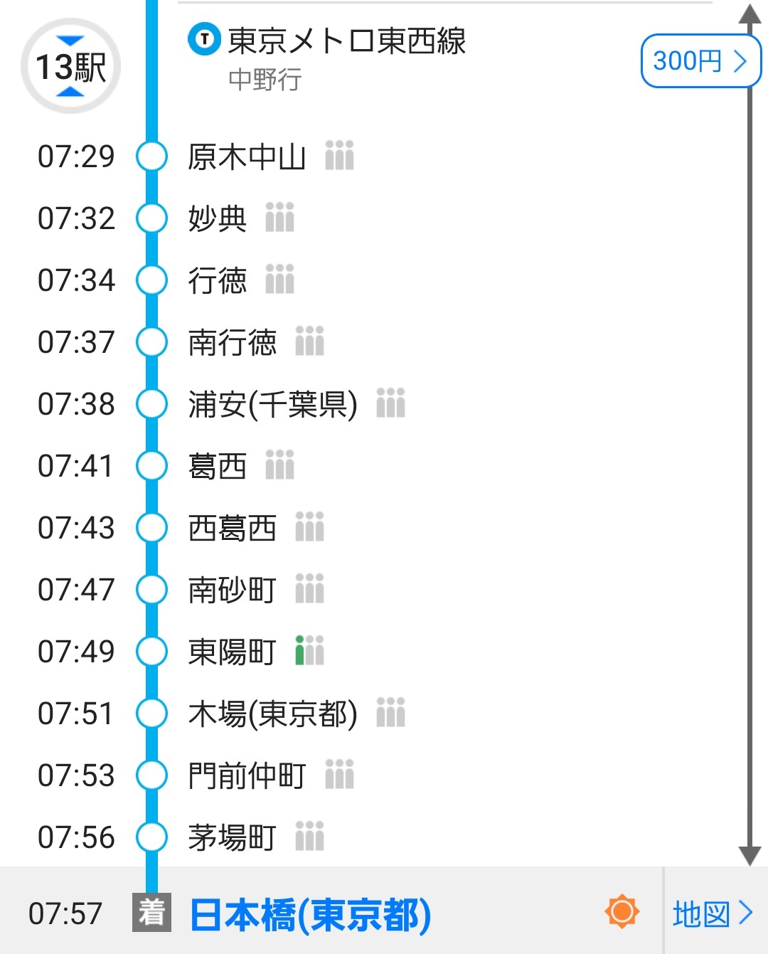 まずは、東葉高速鉄道・東京メトロ東西線で