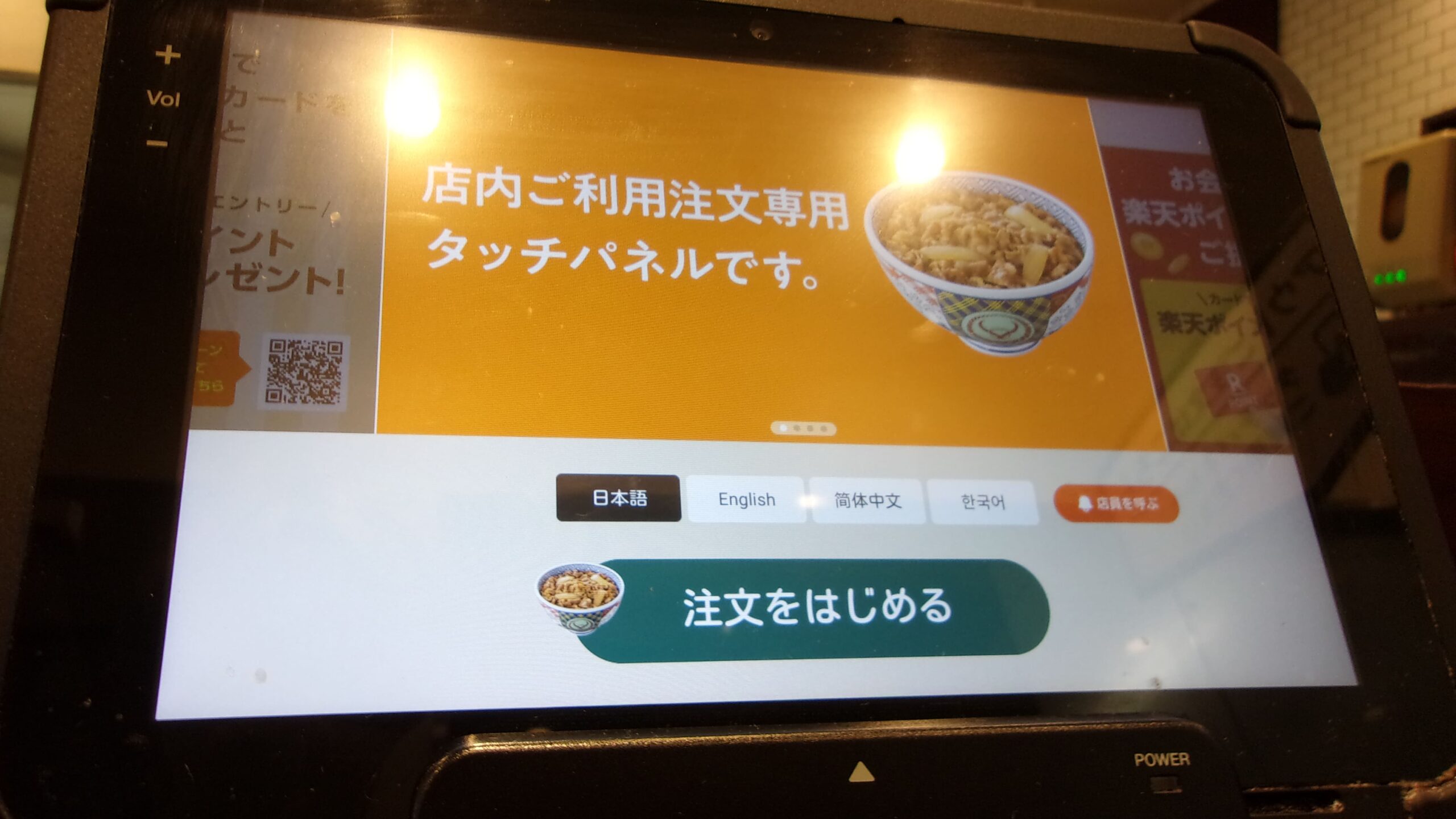 座席前のタブレットで注文し、