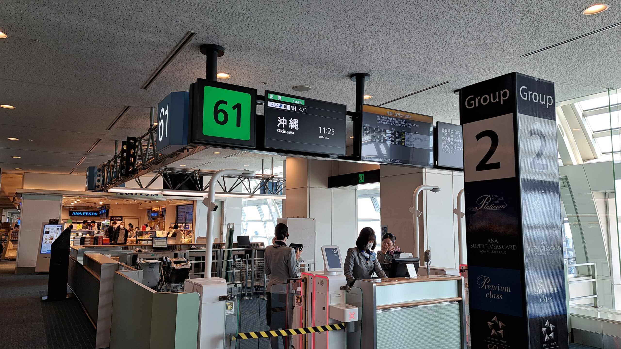 「沖縄便61番ゲート」と記されています。